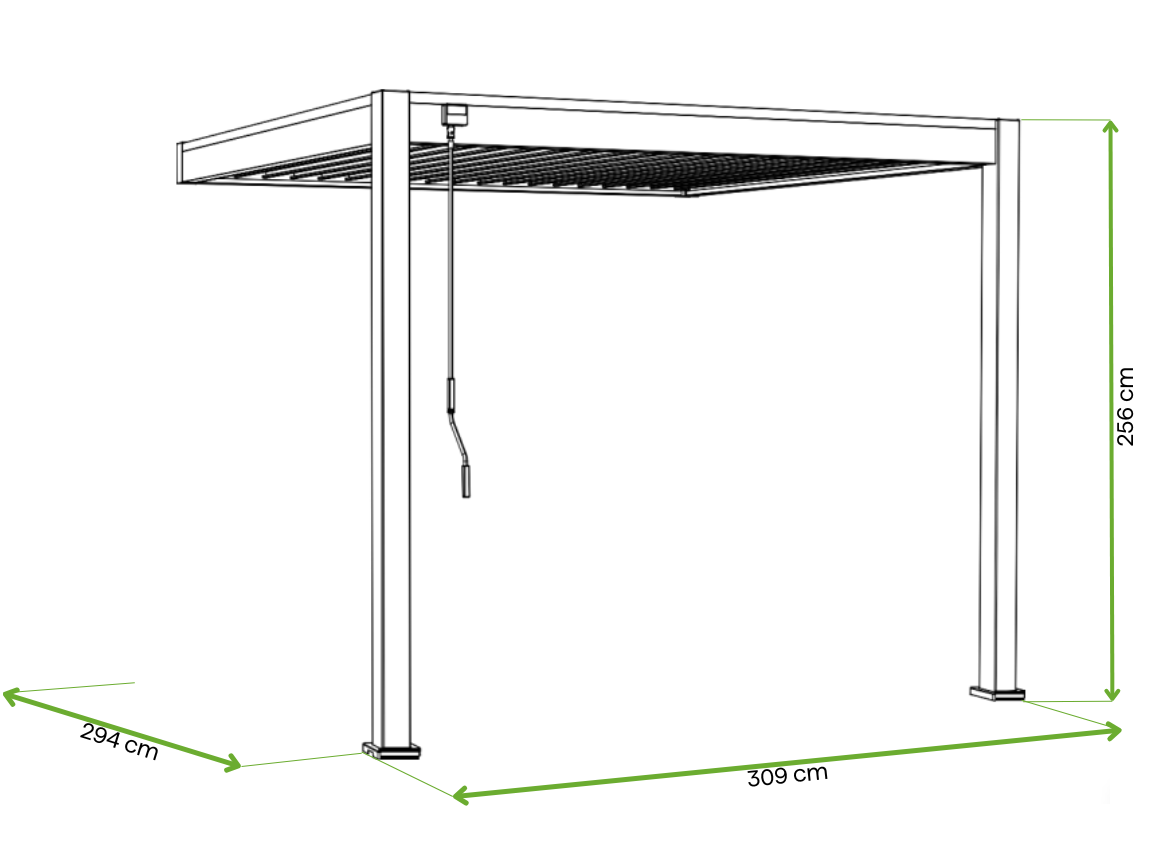 Pergola disponuje najmodernejším systémom odvodu vody, ktorý efektívne odvádza dažďovú vodu mimo relaxačný priestor. Dômyselná konštrukcia zabraňuje hromadeniu vody na streche, čo zvyšuje pohodlie aj počas dažďa. Vďaka tomu si môžete užívať relax vonku bez ohľadu na počasie.