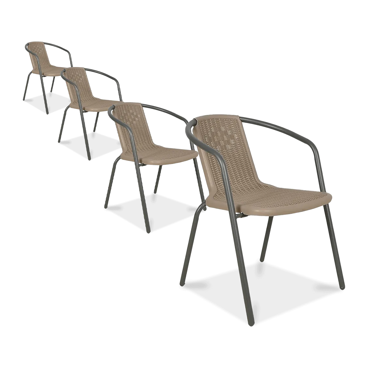 Sada 4 terasových stoličiek SIMPLE v elegantnej grafitovej farbe. Stoličky sú ideálne na terasu, záhradu alebo balkón a ponúkajú komfort pri používaní a odolnosť. Praktické a estetické riešenie za prijateľnú cenu, ideálne pre každý vonkajší priestor.