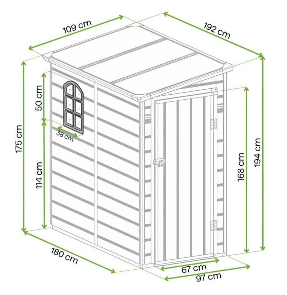 Domček na náradie Boston v elegantnom béžovom odtieni je skvelým riešením pre tých, ktorí hľadajú funkčné úložné priestory na náradie alebo záhradné vybavenie. S rozmermi 109x192 cm a výškou 194 cm sa hodí do malých záhrad alebo na rekreačné pozemky. Domček je vyrobený z polypropylénu – materiálu, ktorý zabezpečuje trvanlivosť a odolnosť voči poveternostným vplyvom a mechanickému poškodeniu a zároveň je ľahký. Šikmá strecha chráni pred hromadením dažďovej vody a snehu, zatiaľ čo ventilačný systém umožňuje účinnú výmenu vzduchu, čo zabraňuje navlhnutiu uložených predmetov.
