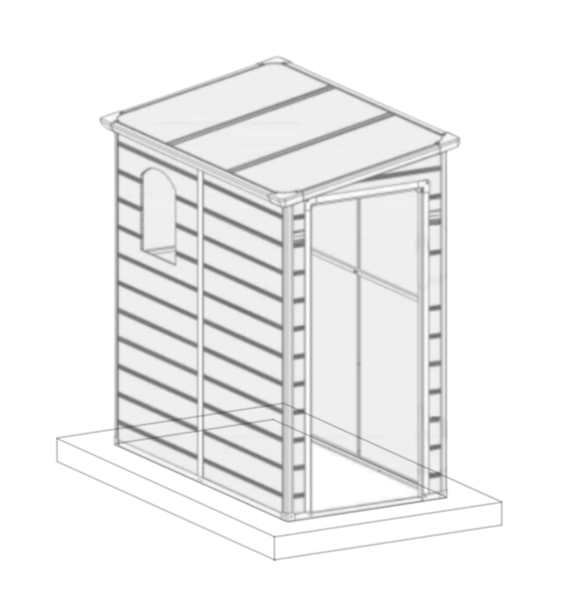 Domček na náradie nemá vlastnú podlahu, preto odporúčame pripraviť vhodný povrch na inštaláciu. Najlepšou možnosťou je zhotoviť betónovú mazaninu s hrúbkou 15 - 20 cm. Mazanina by mala byť väčšia ako rozmery domčeka – mala by presahovať obrys domčeka aspoň o 10 cm. Táto prebytočná plocha zabezpečí stabilitu a ochranu pred dažďovou vodou a tiež uľahčí inštaláciu.