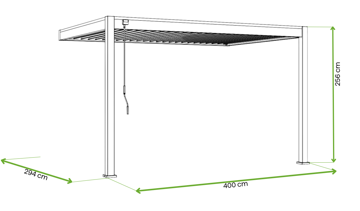 Pergola je vybavená hliníkovými strešnými lamelami, ktoré je možné otáčať až do 135°, čo umožňuje presne regulovať množstvo svetla. Počas horúcich dní si tak môžete vytvoriť príjemný tieň, pri chladnejších večeroch zabezpečíte dostatok čerstvého vzduchu. Intuitívny ovládací mechanizmus funguje plynulo a nevyžaduje veľkú silu, umožňuje rýchlu a komfortnú zmenu nastavení. Prispôsobenie pergoly aktuálnym poveternostným podmienkam je tak jednoduché a pohodlné.