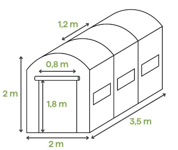 Fóliový tunel je ideálnym riešením pre vášnivých pestovateľov. Poskytuje rastlinám výborné podmienky pre rast a ochranu pred nepriaznivým počasím. Urýchľuje vývoj rastlín, zvyšuje úrodu a predlžuje vegetačné obdobie. Robustná konštrukcia z pozinkovaných oceľových profilov a fólia s UV4 filtrom vystužená PP sieťkou zaručujú trvanlivosť a odolnosť voči poškodeniu. Tunel o dĺžke 3,5 m má 6 vetracích okien so sieťkami proti hmyzu a široké rolovacie dvere so západkami pre pohodlné používanie.