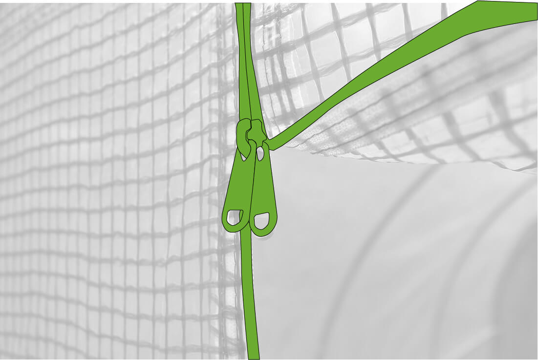 Vďaka pevným suchým zipsom je fólia pevne pripevnená ku konštrukcii, čo zabezpečuje jej rovnomerné napnutie a dobrú tesnosť, chráni rastliny pred vetrom a dažďom.