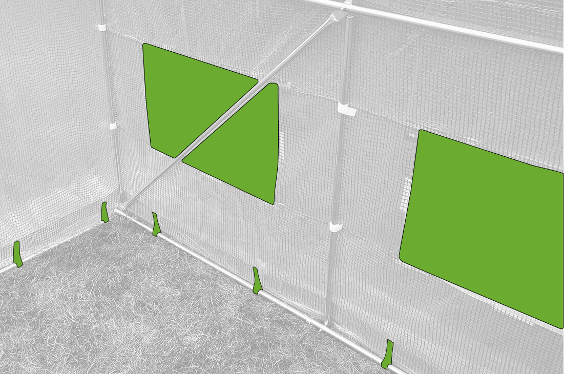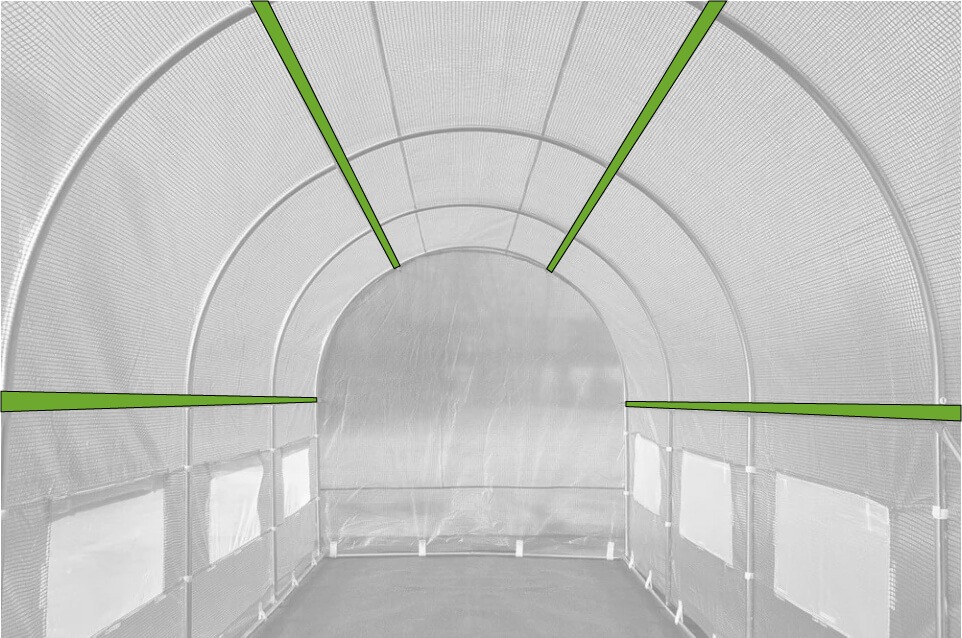 Priečniky namontované v hornej časti konštrukcie zvyšujú jej stabilitu, chránia tunel pred silným vetrom, a slúžia aj na zavesenie šnúr pre popínavé rastliny.