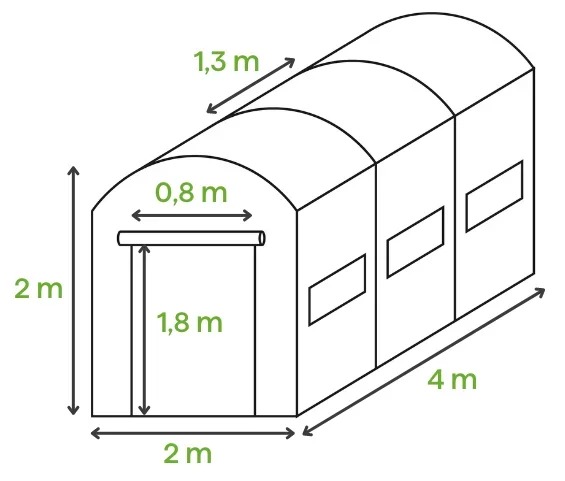 Fóliový tunel 2x4x2 je ideálne riešenie pre tých, ktorí chcú pestovať zdravé, ekologické plodiny vo svojej záhrade alebo na pozemku. Poskytuje rastlinám vhodné podmienky na rast, chráni ich pred nepriaznivými poveternostnými vplyvmi a zvyšuje úrodu. Model s dĺžkou 400 cm a výškou 200 cm umožňuje voľný pohyb vo vnútri tunela. Je vybavený 6 oknami so sieťkami proti hmyzu a širokými dverami s možnosťou rolovania, čo zvyšuje komfort používania. Konštrukcia z obojstranne pozinkovaných profilov a priehľadná PE fólia 140 g/m² s UV4 filtrom a PP sieťovinou zabezpečujú tunelu dlhú životnosť a odolnosť voči poškodeniu.