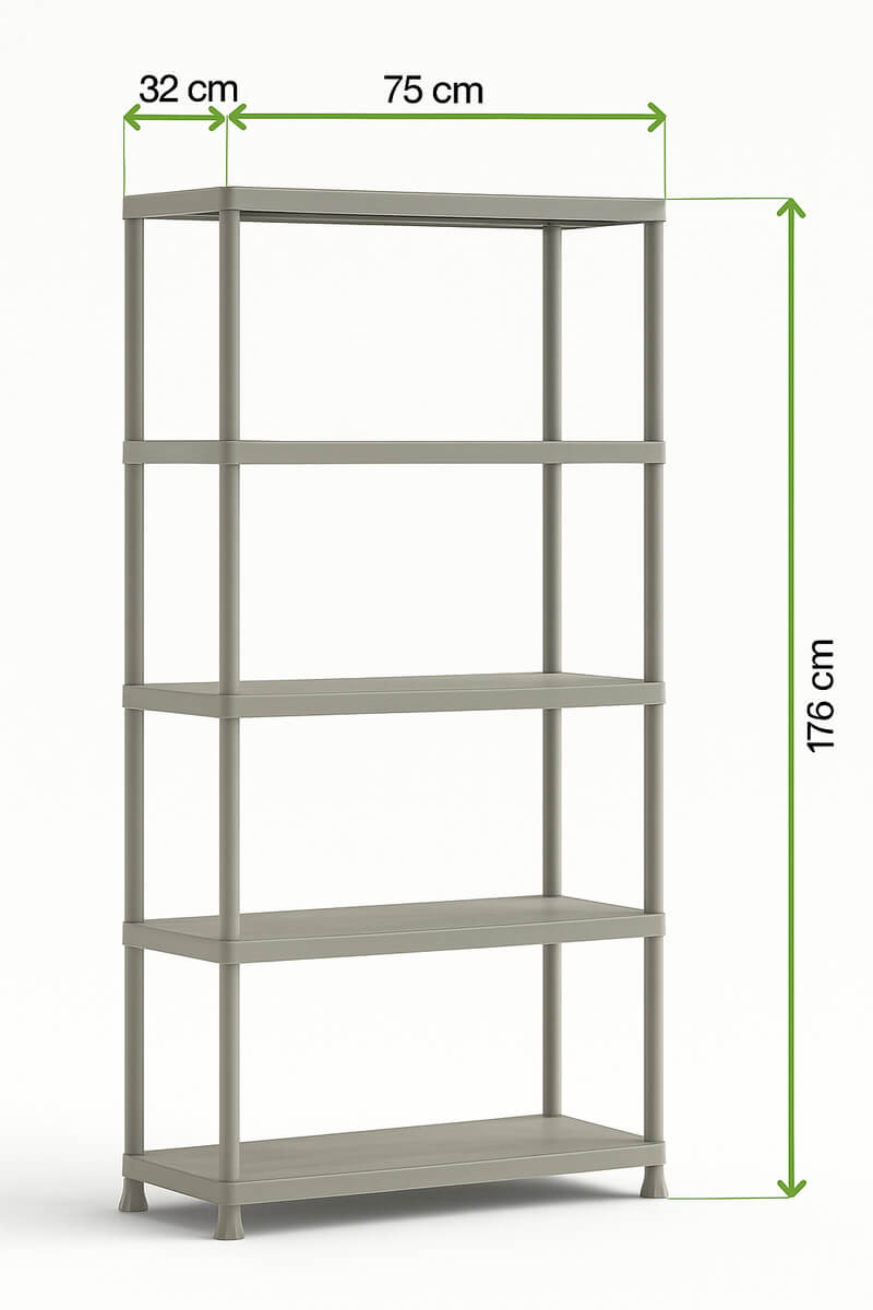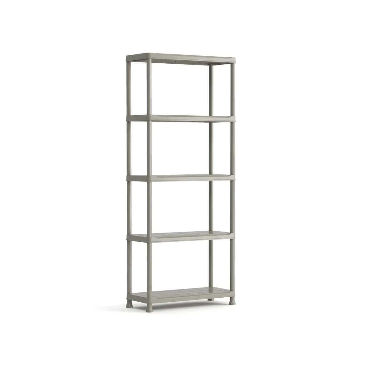 Polička Plus Shelf 75/5 od spoločnosti Keter je univerzálnym a praktickým riešením pre úložné priestory od domácnosti cez pivnicu až po garáž alebo dielňu. Je vyrobená z odolného, vysokokvalitného plastu a vyznačuje sa odolnosťou voči vlhkosti a UV žiareniu, čo zaručuje jej dlhodobé používanie. Päť políc, z ktorých každá má nosnosť až 25 kg, možno ľubovoľne rozmiestniť a prispôsobiť tak konfiguráciu regálov vašim potrebám. Dodatočné konštrukčné výstuhy zabezpečujú väčšiu stabilitu a bezpečnosť uložených predmetov.