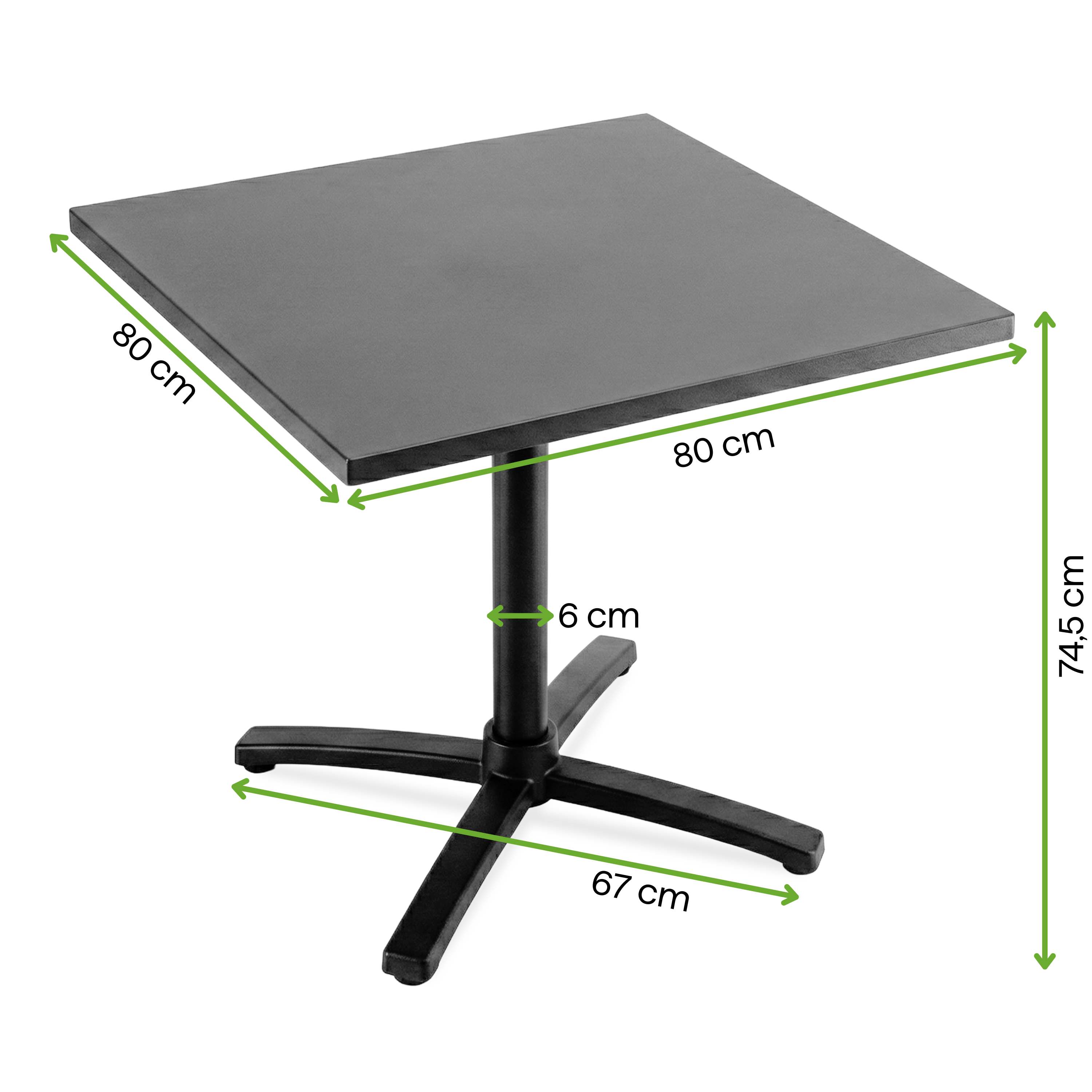Hliníkový stôl ALVIA/GRANO 80 cm – Bjørkka je moderná stolová zostava navrhnutá pre intenzívne používanie v interiéri aj exteriéri. Spojenie ľahkej, no zároveň stabilnej hliníkovej podnože ALVIA Black so solídnou doskou GRANO 80 BLACK vytvára funkčný a estetický celok, ideálny do záhrady, na terasu, balkón aj do komerčných priestorov. Konštrukcia s výškou 72 cm zabezpečuje komfortné používanie a široká podnož garantuje pevné opretie aj pri každodennom zaťažení. Doska s rozmermi 80 × 80 × 2,5 cm, vyrobená z hliníka a upravená v pieskovo čiernej farbe, vyniká vysokou odolnosťou voči vlhkosti, nárazom, prasklinám a vysokým teplotám. Celok si zachováva konzistentný, minimalistický charakter inšpirovaný škandinávskym dizajnom, ponúkajúc trvácnosť, ľahkú údržbu a univerzálne použitie v súkromných aj gastronomických priestoroch.