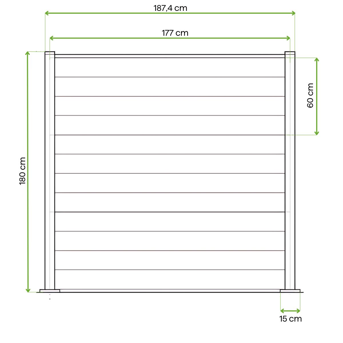 Jeden plotový modul Keter umožňuje vytvoriť oplotenie o dĺžke 1,8 metra. Ak potrebujete pokryť dlhší úsek, zakúpte príslušný počet modulov: