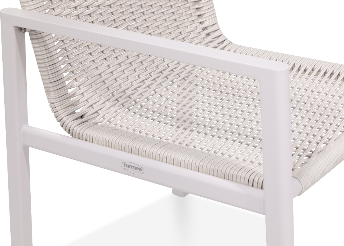 Stoličky stoja na robustnom ráme z práškovo lakovaného hliníka, ktorý je odolný voči korózii a ľahko sa udržiava. Operadlo a sedadlo majú povrchovú úpravu z odolného technorattanového výpletu, ktorý zaručuje pohodlie a estetický vzhľad na mnoho sezón používania vonku.