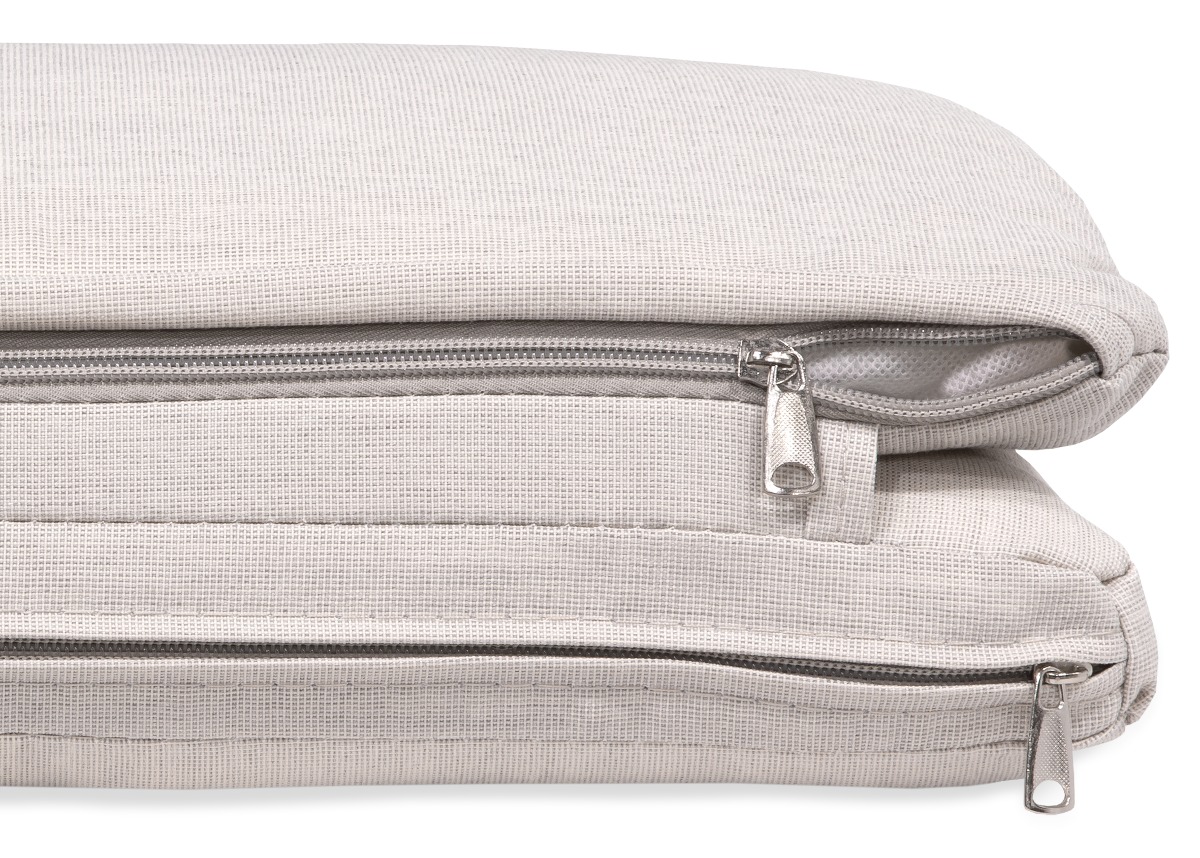 Poťahy sú vyrobené z odolnej polyesterovej tkaniny, ktorá sa osvedčuje vo vonkajších podmienkach. Materiál rýchlo schne po kontakte s vodou a nestráca farbu ani pri vystavení UV žiareniu. Vďaka tomu zostanú vankúše estetické a funkčné počas celej sezóny používania.