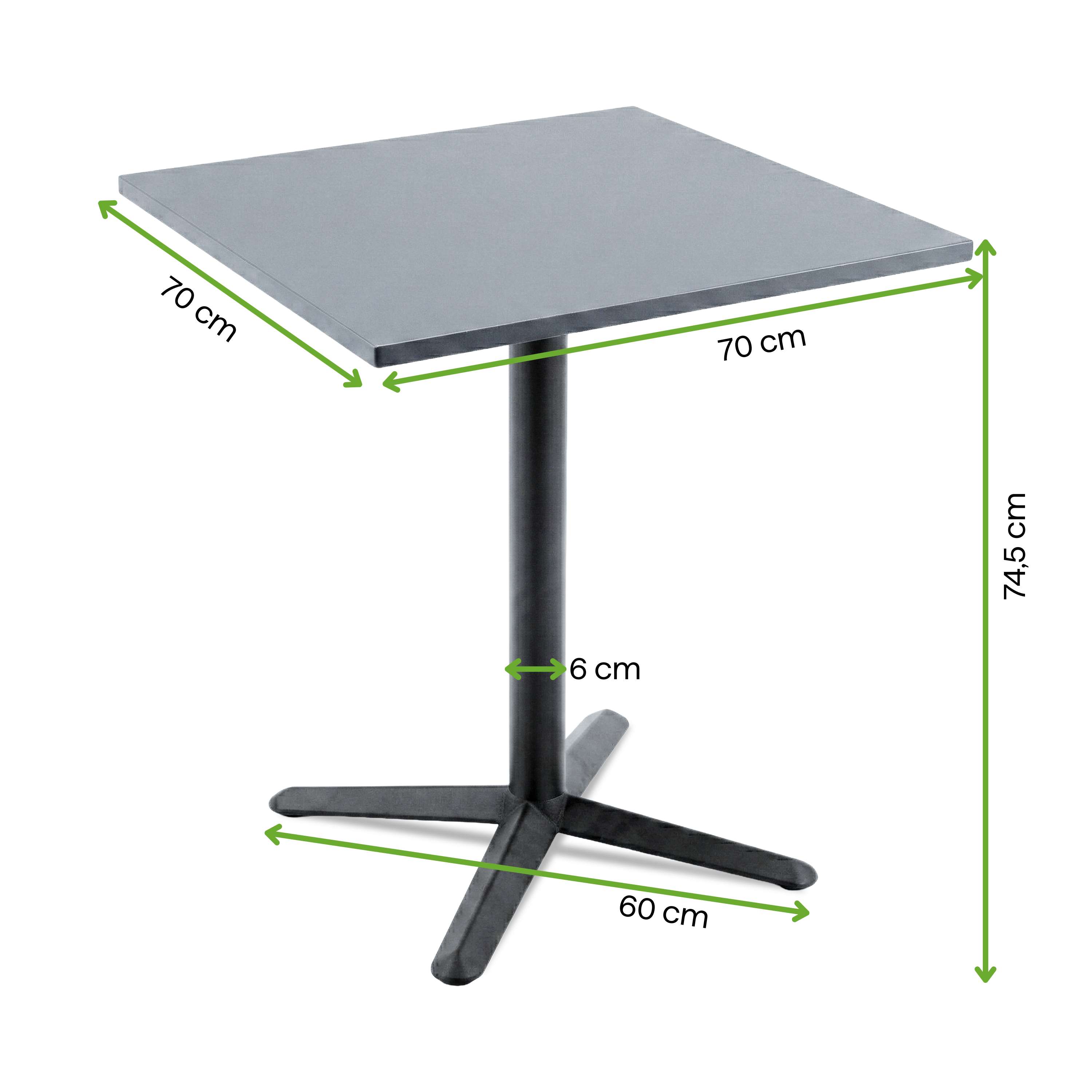 Konferenčný stolík ORIS/GRANO 80 cm - Bjørkka je pevný, moderný stolík na vnútorné a vonkajšie použitie, založený na masívnej liatinovej podnoži ORIS Black v kombinácii s hliníkovou doskou GRANO s rozmermi 80 × 80 cm. Liatinová konštrukcia zabezpečuje vysokú stabilitu a nosnosť podnože až do 25 kg, a ochrana v podobe elektronického náteru (e-coating) v pieskovo čiernej farbe účinne chráni podnož pred vlhkosťou, zmenami teploty a mechanickým poškodením. Odolná hliníková doska zaručuje jednoduchú údržbu čistoty a estetický, moderný vzhľad. Stolík je ideálny do záhrady, na terasu, balkón a do komerčných priestorov, ako sú gastronomické prevádzky.