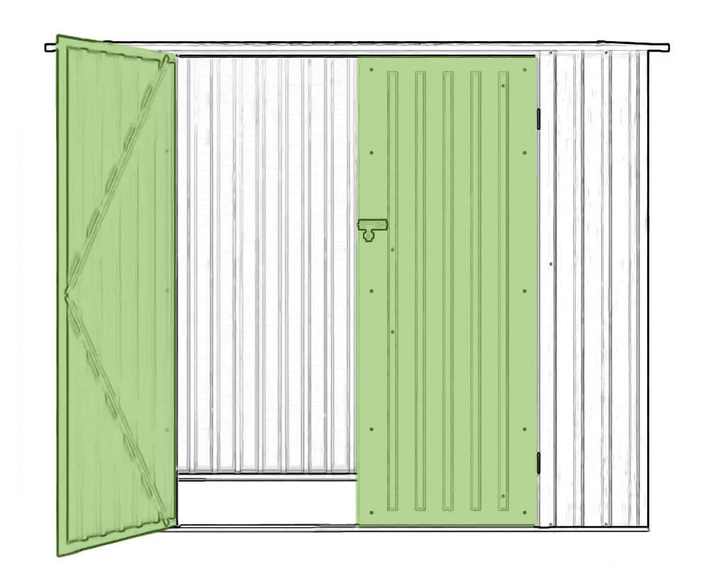 Dvojité dvere na domčeku KENT poskytujú pohodlný prístup do interiéru aj s väčším vybavením. Zámok so závorou umožňuje namontovať ďalší visiaci zámok, čím sa zvyšuje úroveň zabezpečenia.