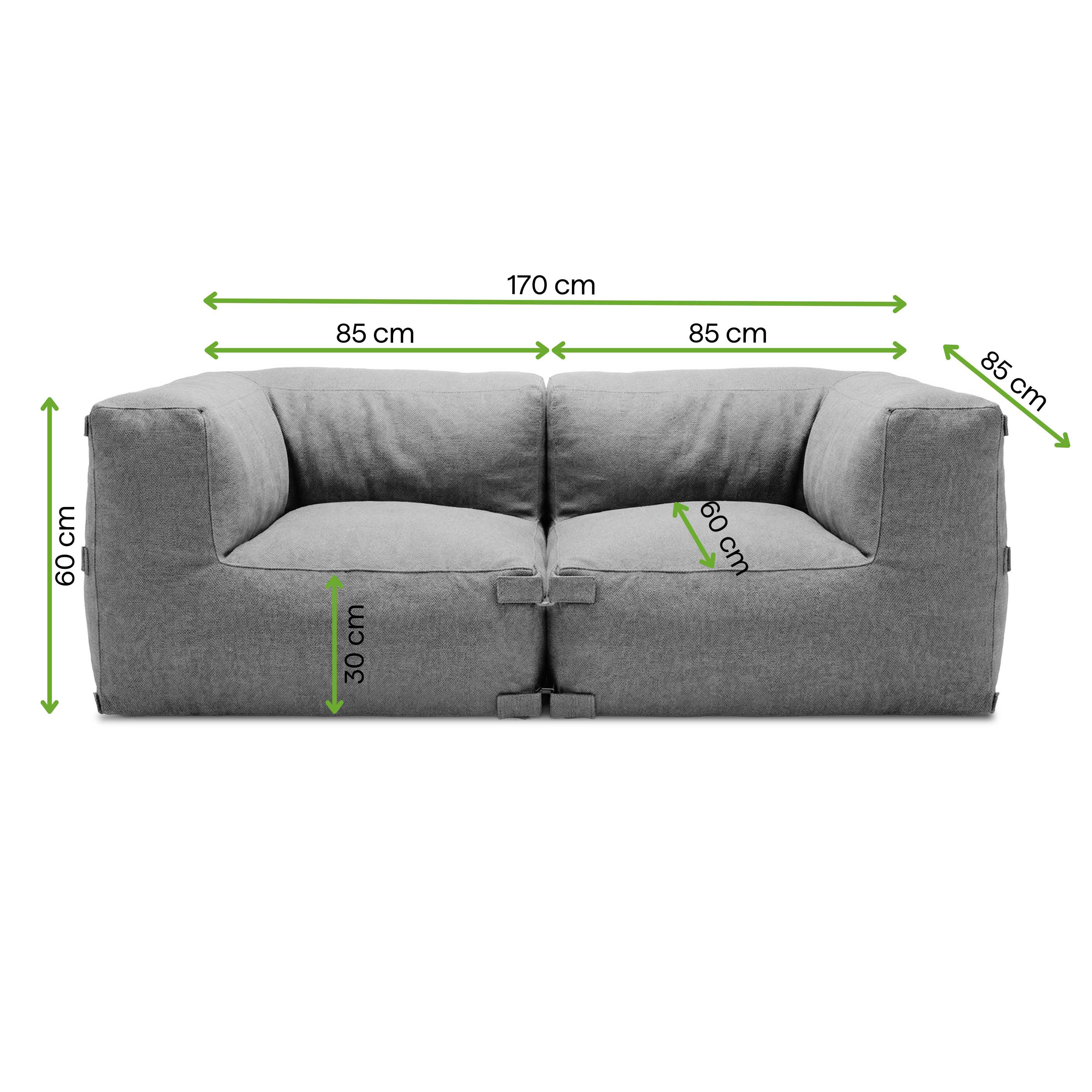 Záhradná modulová pohovka ALORA Compact Grey od Bjørkka, pozostávajúca z dvoch rohových modulov, je kompaktné a funkčné riešenie na zariadenie terasy, balkóna alebo záhrady, ktoré spája moderný dizajn s praktickosťou použitia. Sedadlá vo výške 30 cm sú vyplnené expandujúcou penou, ktorá po rozbalení obnoví svoj tvar a zabezpečuje pohodlnú, stabilnú oporu, pričom konštrukcia prispôsobená na zaťaženie do 110 kg potvrdzuje odolnosť pri každodennom používaní. Poťah je vyrobený zo sivej olefínovej látky s TPU úpravou s vlastnosťami vodoodpudivosti, čo obmedzuje nasiakavosť vlhkosti a uľahčuje údržbu nábytku; súčasťou je odnímateľný, prateľný poťah, ktorý chráni pred miernym a stredným dažďom. Ľahká konštrukcia umožňuje jednoduché prenášanie a systém spájania na suché zipsy stabilne spája prvky a umožňuje ľubovoľne konfigurovať pohovku s ďalšími modulmi kolekcie ALORA, zatiaľ čo vákuové balenie do malých, praktických kartónov uľahčuje prepravu a skladovanie pred montážou. Aby pena mohla úplne expandovať a dosiahnuť správny tvar, odporúča sa počkať až 48 hodín pred nasadením poťahu – počas tejto doby sa výplň správne usadí a dosiahne svoje konečné vlastnosti.