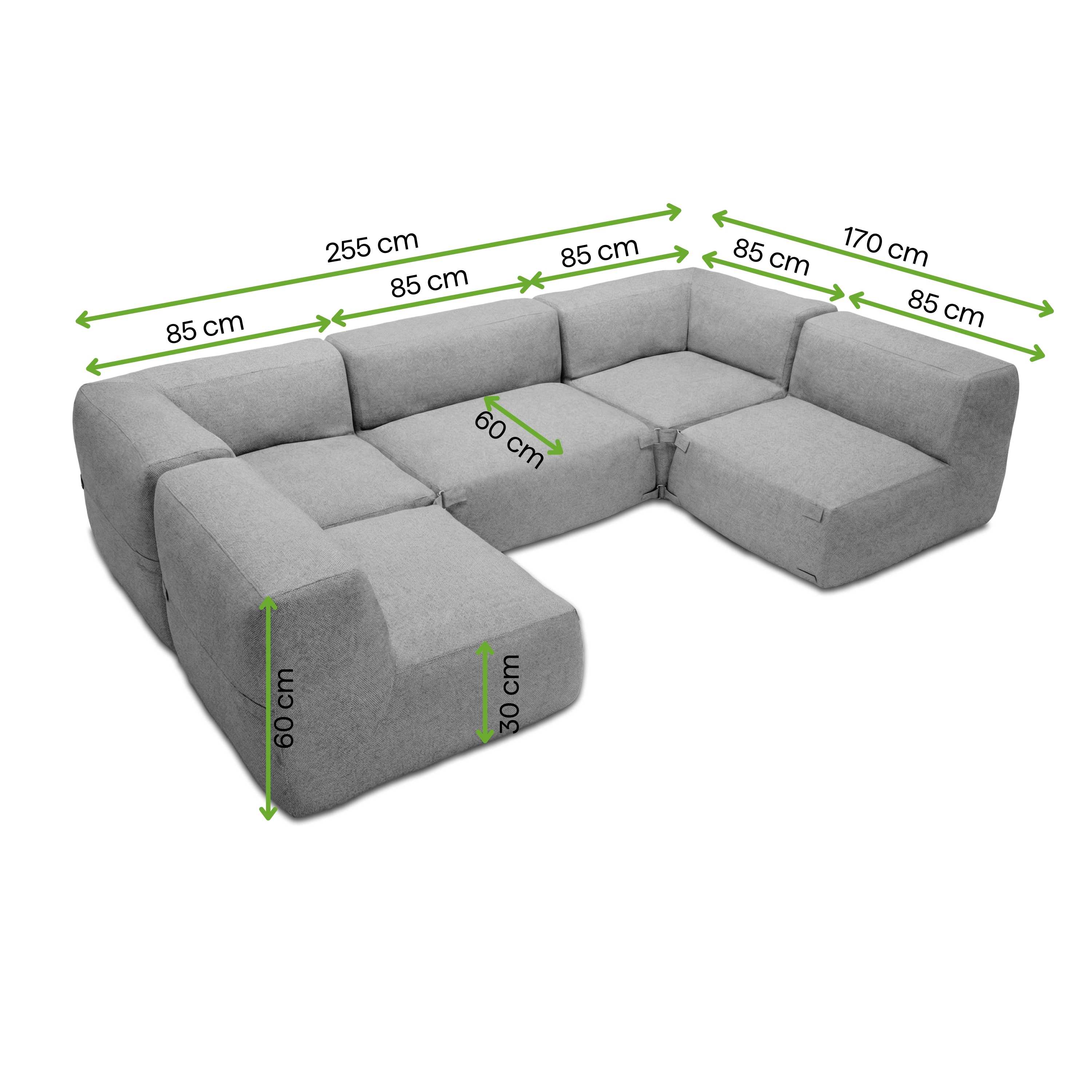 Modulový rohový set na terasu ALORA Comfort Plus Grey od Bjørkka je päťdielna súprava na oddych založená na dvoch rohových a troch stredových moduloch, ktoré je možné ľubovoľne konfigurovať vďaka spojeniam na suché zipsy, ktoré zabezpečujú stabilitu a flexibilitu usporiadania. Každý modul má sedadlo vo výške 30 cm a celkovú výšku 60 cm, pričom jeho konštrukcia je navrhnutá na maximálne zaťaženie do 110 kg na modul. Výplň tvorí rozpínacia pena, ktorá sa prispôsobuje postave a udržiava komfort používania, zatiaľ čo čalúnenie z látky Olefin vyniká trvanlivosťou, odolnosťou voči vonkajším podmienkam a úpravou typu water repellent, ktorá obmedzuje nasiakavosť vlhkosti. Celok dopĺňa obal chrániaci pred ľahkým a miernym dažďom, ktorý je možné ľahko zložiť a vyprať, a ľahká konštrukcia modulov umožňuje pohodlné prenášanie a sezónne skladovanie v prípade nepriaznivého počasia. Pre plné rozvinutie peny a dosiahnutie jej optimálneho tvaru odporúčame počkať až 48 hodín pred nasadením obalu – počas tejto doby sa výplň správne usadí a dosiahne svoje optimálne vlastnosti.
