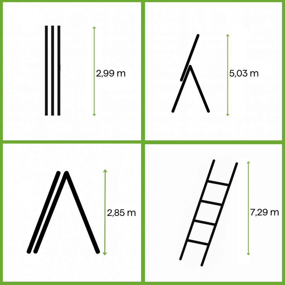 Rebrík je vyrobený z odolného hliníka, ktorý spája nízku hmotnosť s vysokou odolnosťou voči korózii a premenlivým poveternostným podmienkam. Takáto konštrukcia zaručuje dlhú životnosť zariadenia a zároveň umožňuje pohodlnú manipuláciu a komfortnú obsluhu pri práci na rôznych miestach. Ľahký, ale pevný rám zaručuje spoľahlivosť pri používaní a bezpečnosť pri každodenných úlohách.