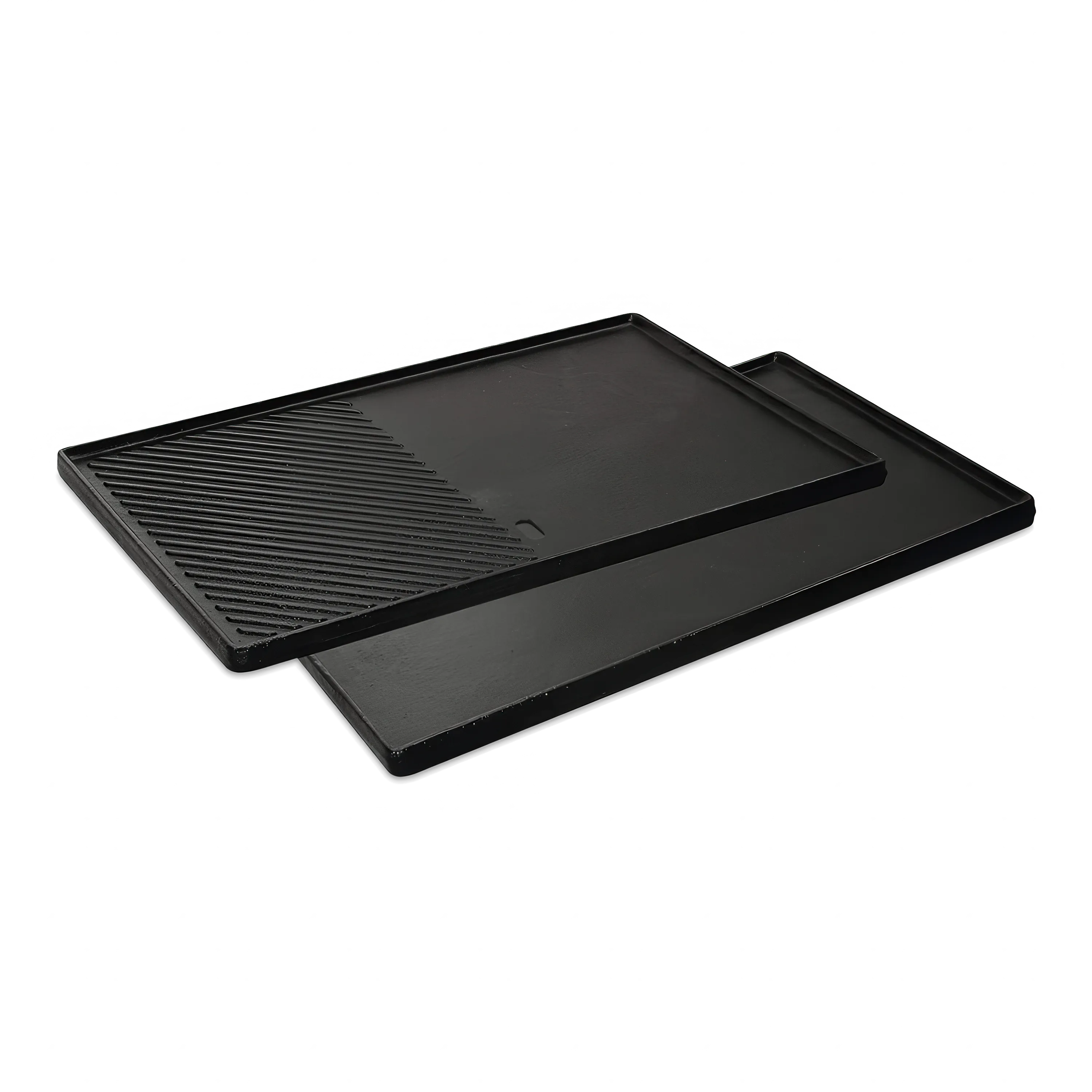 Liatinová panvica 1/2 pre grily ENDERS je ideálnym riešením pre tých, ktorí chcú na grile pripraviť dokonalé jedlo. Doska zabezpečuje optimálne rozloženie tepla pre dokonalé výsledky a robí z plynového grilu Enders skutočnú mobilnú vonkajšiu kuchyňu. Doska má možnosť obojstranného použitia - jedna strana je úplne hladká a druhá polovica rebrovaná, polohladká. Ideálna na prípravu malých grilovaných pokrmov, ako sú morské plody, zelenina, vyprážané vajcia a slanina.