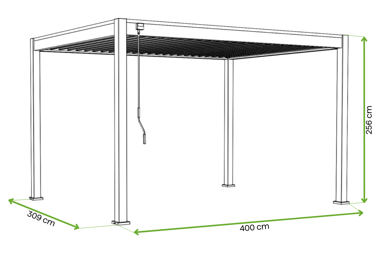 Ručný mechanizmus nastavenia lamiel umožňuje presne regulovať množstvo svetla dopadajúceho pod pergolu. Vďaka nemu môžete jednoducho vytvoriť príjemný tieň počas horúcich dní alebo nakloniť lamely, aby prepúšťali viac slnečného svetla. Ovládanie systému je jednoduché a pohodlné a mechanizmus pracuje hladko bez potreby veľkej námahy. Toto funkčné riešenie poskytuje komfortné prostredie na oddych bez ohľadu na počasie.