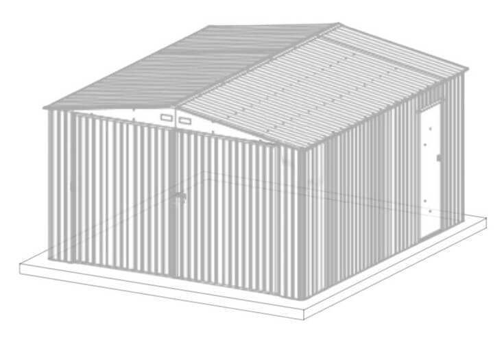 Pred začatím montáže sa uistite, že betónový poter je primerane rovný a úplne suchý. Montáž garáže na nerovnom povrchu môže viesť k nestabilite konštrukcie. Kotvy na montáž do podkladu nie sú súčasťou súpravy - použite vlastné upevňovacie prvky vhodné pre daný typ podkladu.