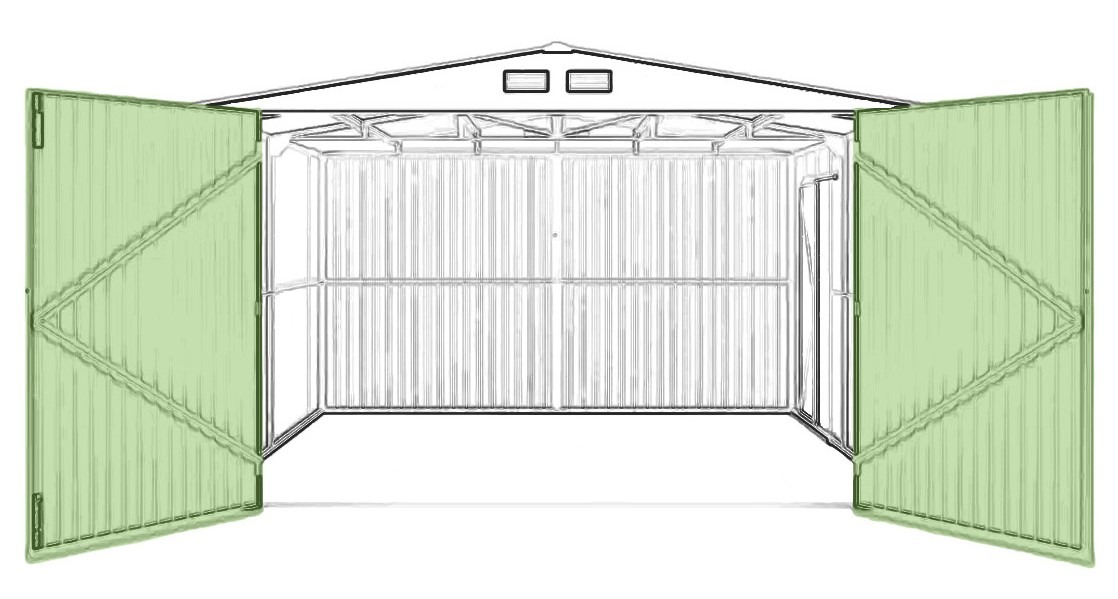 Dvojkrídlové široké dvere garáže Kingston poskytujú pohodlný prístup do interiéru. S výškou 198 cm umožňujú vjazd väčších vozidiel a záhradnej techniky. Vďaka robustnej konštrukcii z kvalitného plechu je brána mimoriadne pevná a odolná voči poškodeniu.