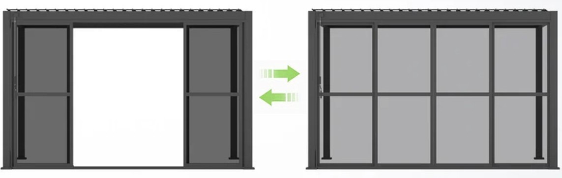 Systém posuvných dverí v pergole Premium Gutroof umožňuje, že každá zmena nastavenia prebieha ľahko a bez odporu. Je to riešenie, ktoré zvyšuje funkčnosť priestoru a zlepšuje komfort pobytu vonku.