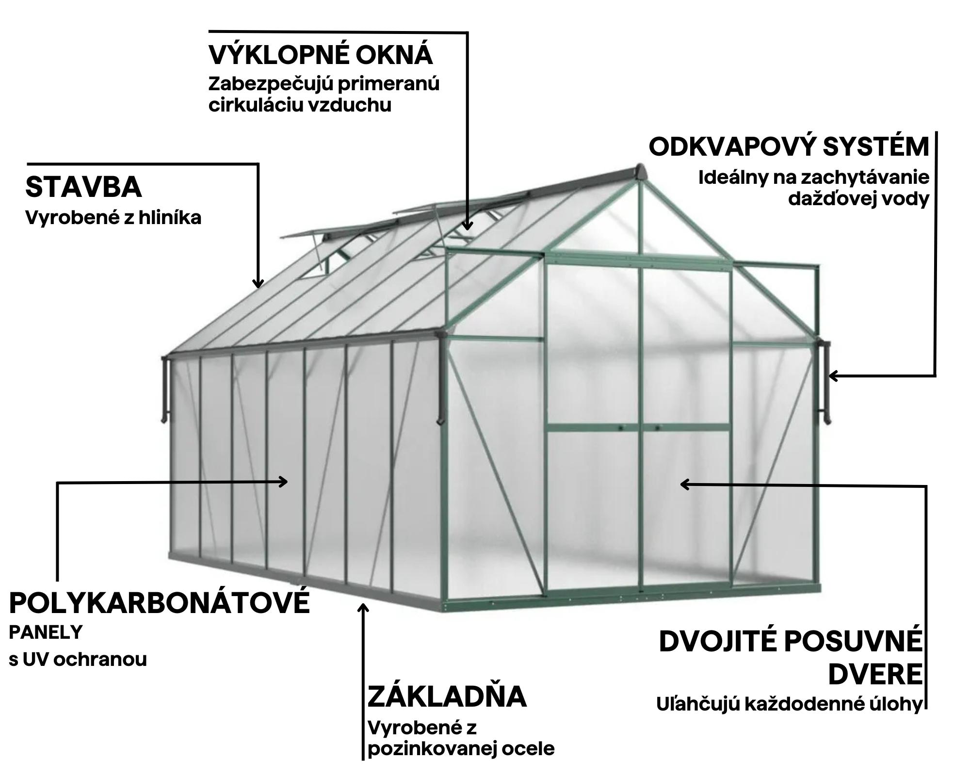 Polykarbonátový skleník Slide-In NEW 244 x 429 cm Dark Green – Cultivo