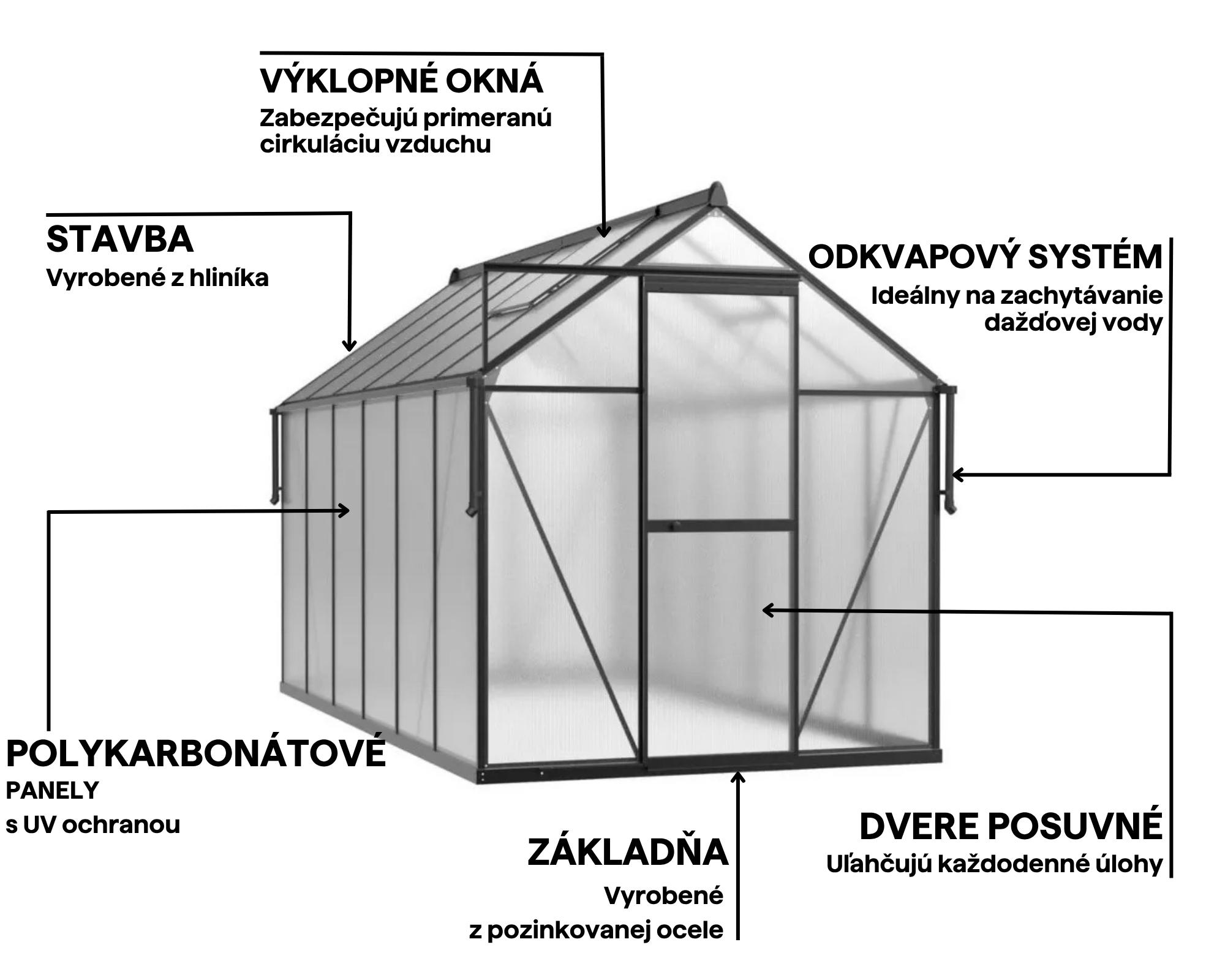 Záhradný skleník z polykarbonátu Slide-In NEW 183x303cm Black – Cultivo