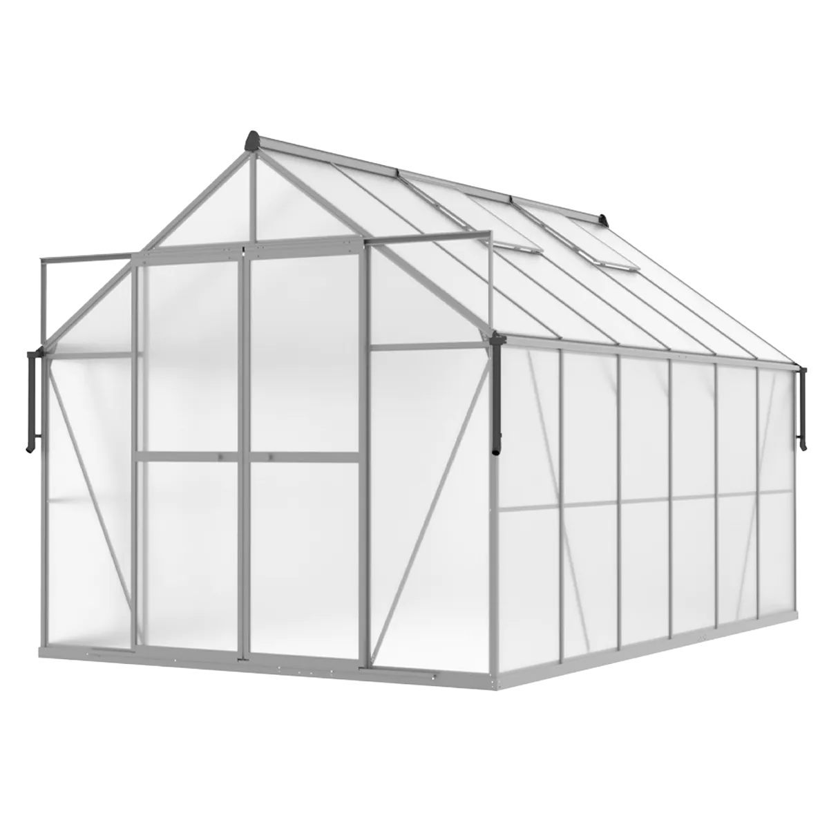 Táto verzia skleníka využíva 4 mm polykarbonát s ochrannou fóliou, ktorý zabezpečuje účinnú izoláciu a udržiava stabilné mikroklíma pre rastliny aj v chladnejších dňoch. Okrem toho UV filter chráni plodiny pred nadmerným slnečným žiarením.