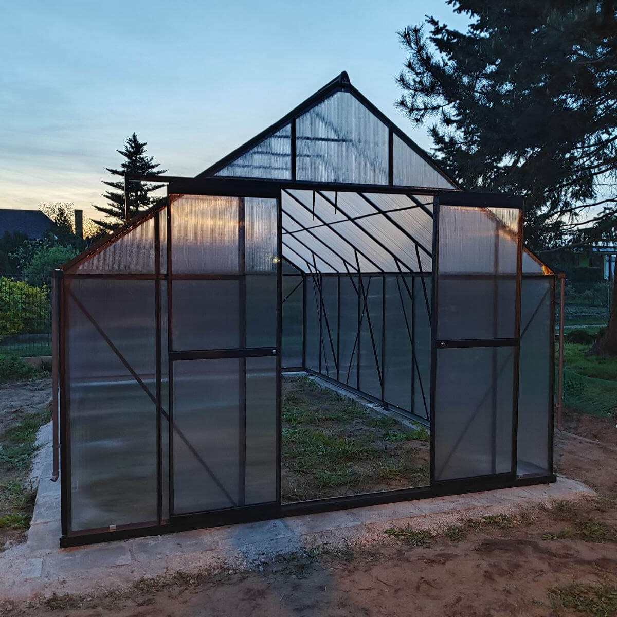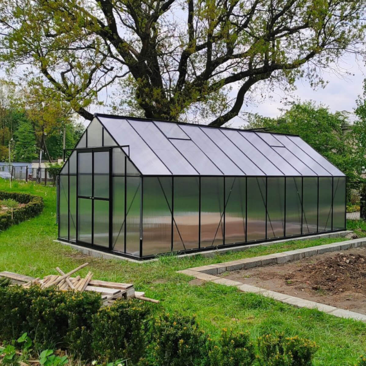 Pokročilý systém Slide-In umožňuje inštaláciu polykarbonátových panelov bez použitia kovových spôn, ktoré sa zasúvajú priamo do rámu konštrukcie, čo zaručuje vysokú stabilitu a odolnosť skleníka. Vďaka tomu môžu skleníky rýchlo zmontovať aj začiatočníci. Panely sú bezpečne upevnené v ráme, čo zvyšuje odolnosť voči vetru a nepriaznivým poveternostným podmienkam, a absencia voľných prvkov znižuje riziko poškodenia v priebehu času. Presné fungovanie systému je ukázané vo videu. Upozorňujeme, že skleník musí byť umiestnený najmenej 1,5 metra od budovy, aby bola zabezpečená správna inštalácia a ventilácia.
