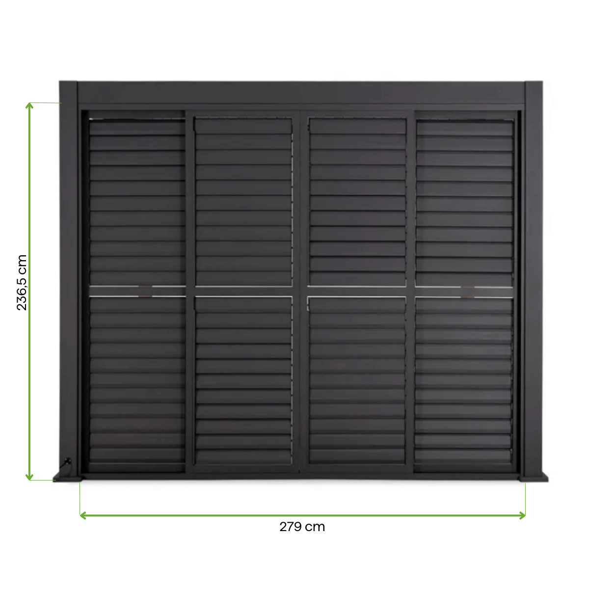 Posuvné pergolové žalúziové dvere PREMIUM 3 m v antracitovej farbe, ktoré ponúka renomovaný výrobca Gutroof, spájajú jedinečnú estetiku s funkčnosťou na najvyššej úrovni. Objavte dokonalosť v jednoduchosti používania. Jednoduchý posuvný mechanizmus umožňuje ich ľahké otváranie a zatváranie, čím získate kontrolu nad atmosférou vášho priestoru. Dvere vytvorené z práškovo lakovaného hliníka poskytujú ochranu pred nepríjemným UV žiarením a nežiaducim teplom. Vďaka nastaviteľným žalúziám máte plnú kontrolu nad svetlom a súkromím. Robustné hliníkové tyče a rám s bezkonkurenčnou pevnosťou poskytujú stabilitu a bezpečnosť, ktorú očakávate od výrobku najvyššej kvality. Venované výhradne pergolám radu Premium 3 m, ktoré sú kvintesenciou triedy a prestíže. Zásielka s dverami sa dodáva vo vhodne navrhnutých kartónových škatuliach. Rýchla a bezproblémová montáž.