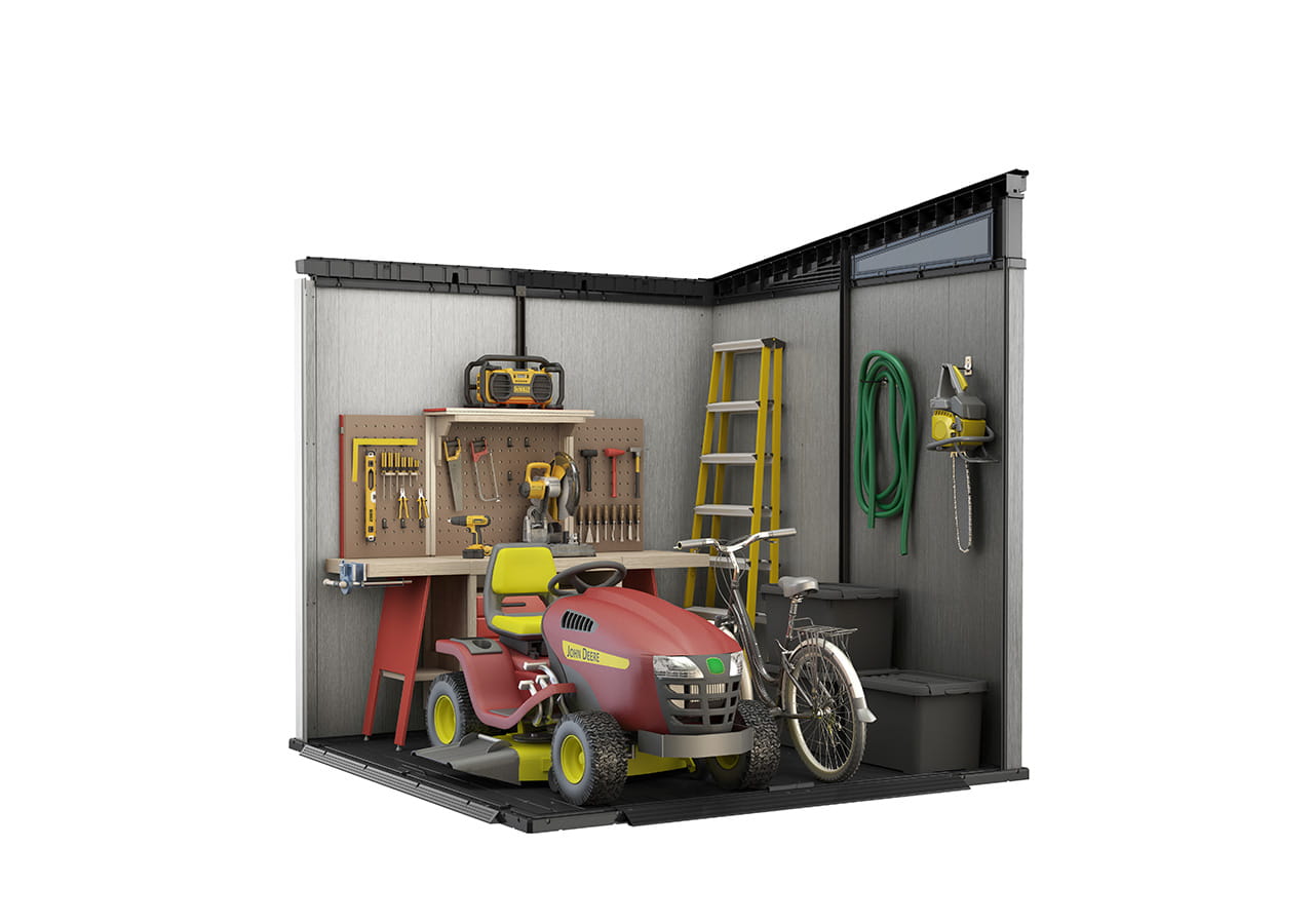 Vo vnútri uložíte všetko potrebné na záhradu – od náradia až po veľké vybavenie. Premyslená konštrukcia a zvislé steny znamenajú, že využijete každý centimeter priestoru.