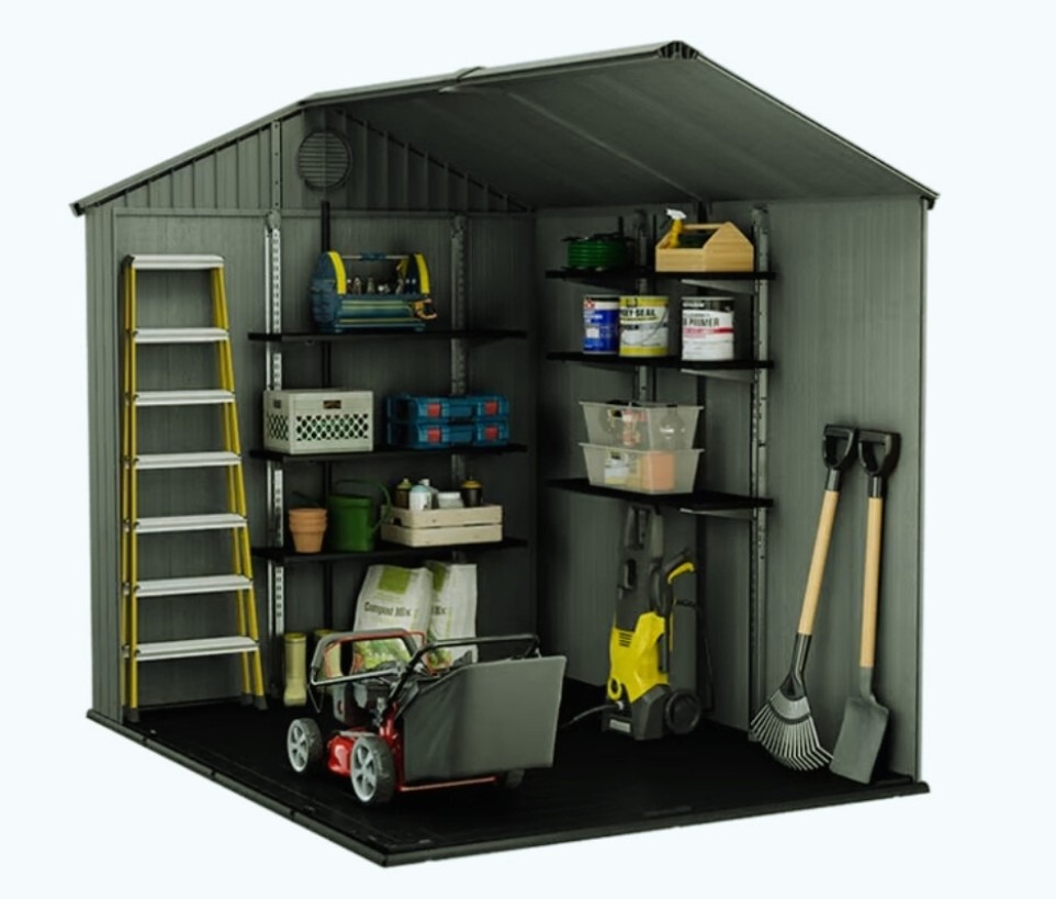 Funkčný interiér umožňuje ľahko usporiadať náradie, záhradné vybavenie a väčšie predmety, napríklad sezónny nábytok.