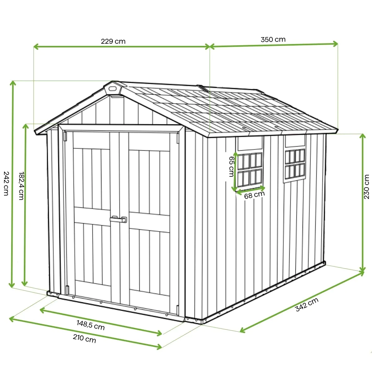 Záhradný domček Keter Oakland 7511 (210 × 342 × 242 cm) je ideálnym miestom pre náradie, nábytok alebo športové vybavenie. Je vyrobený z odolného kompozitu Duotech s kresbou dreva, odolného voči UV žiareniu a poveternostným vplyvom. Má pevnú podlahu (150 kg/m²), šikmú strechu s osvetlením, široké dvojkrídlové dvere s oceľovým zámkom a možnosť maľovania stien. Kovové výstuhy a 12-ročná záruka zaručujú dlhoročné používanie. Jednoduchá montáž bez špeciálneho náradia.