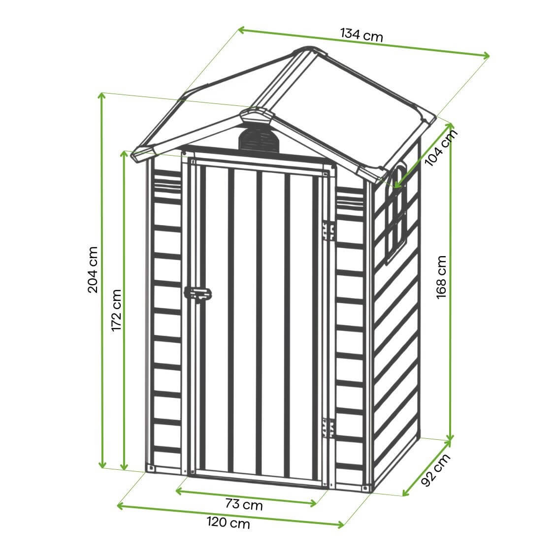 Model VERMONT je funkčná a štýlová záhradná chatka, ideálna na uskladnenie vybavenia a príslušenstva. Jej univerzálny dizajn sa hodí do každej záhrady. Šikmá strecha chráni pred snehom a dažďom a udržiavanie čistoty je otázkou utretia vlhkou špongiou.