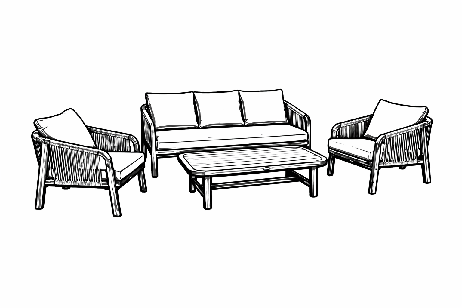 Harmonický doplnok vášho domáceho priestoru. Či už stojí na zelenom trávniku alebo modernej terase, táto súprava ľahko premení vaše okolie na prestížny obývací salónik pod holým nebom.