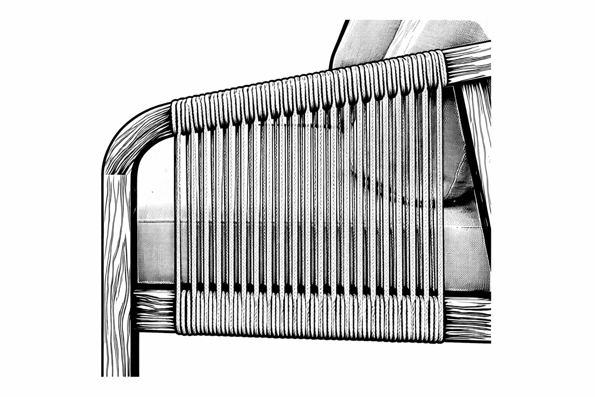 Jedinečný dizajn zvýraznený jemným výpletom zo 6 mm polyesterového lana. Táto moderná povrchová úprava dodáva nábytku vizuálnu ľahkosť a vnáša do vášho priestoru škandinávsky šik.