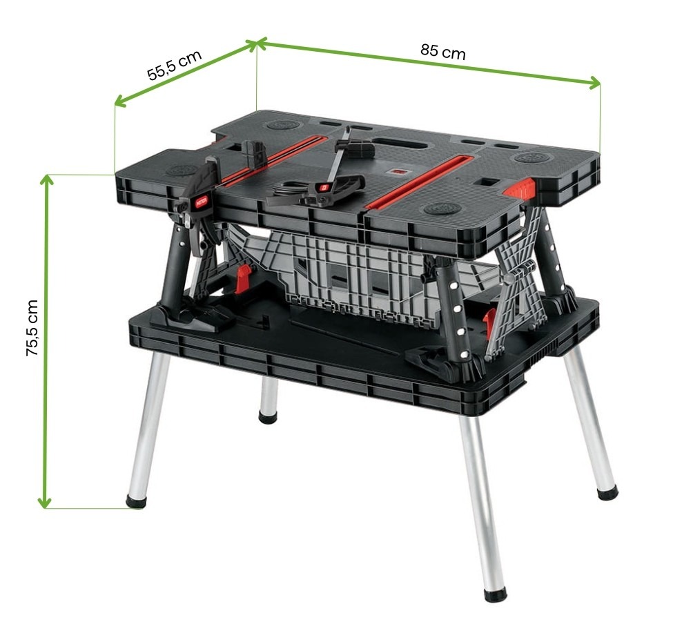 Praktický a mobilný skladací pracovný stôl KETER je nepostrádateľným nástrojom pre každého, kto oceňuje funkčnosť a rýchlu prípravu pracovného priestoru. Vďaka možnosti rýchleho zloženia a rozloženia je stôl rovnako doma v garáži aj v teréne. Vďaka veľkej pracovnej ploche a pôsobivej sile až 453 kg je ideálny aj na tie najnáročnejšie úlohy. Súčasťou balenia sú dve silné 30 cm svorky na stabilizáciu materiálu počas práce. Je ideálnou voľbou pre profesionálov a domácich majstrov, ktorí očakávajú spoľahlivé riešenia.