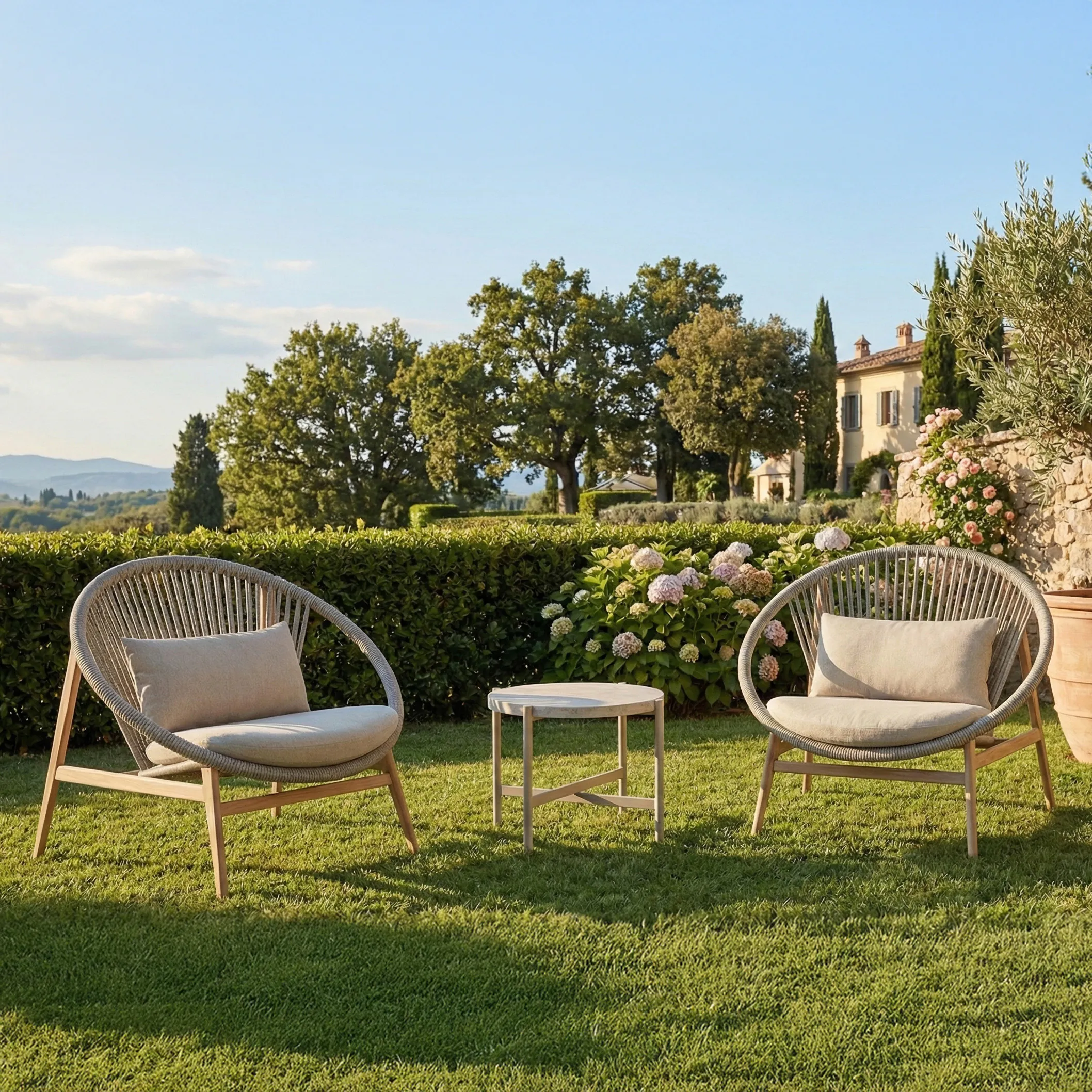 Komplet záhradného nábytku GALLA 2+1 Light Beige značky Bjørkka je funkčný set určený na zariadenie terasy, balkóna a záhrady. Set obsahuje dve záhradné kreslá a konferenčný stolík, ktoré spolu tvoria praktickú relaxačnú zónu na každodenné vonkajšie používanie. Moderný dizajn v kombinácii s povrchovou úpravou Wood Look zdôrazňuje prirodzený vzhľad nábytku a umožňuje jednoduché zladiť set s rôznymi štýlmi vonkajších priestorov. Záhradný set GALLA 2+1 bol navrhnutý s dôrazom na pohodlie používania, trvácnosť materiálov a estetický vzhľad počas celej sezóny. Ľahká forma nábytku nezatlačuje priestor a pevná konštrukcia zabezpečuje stabilitu a komfort pri používaní. Terasa nábytok Bjørkka GALLA 2+1 je riešením pre tých, ktorí hľadajú moderný relaxačný set vhodný ako do súkromnej záhrady, tak aj do rekreačných priestorov, pričom nevyžaduje zložitú údržbu.