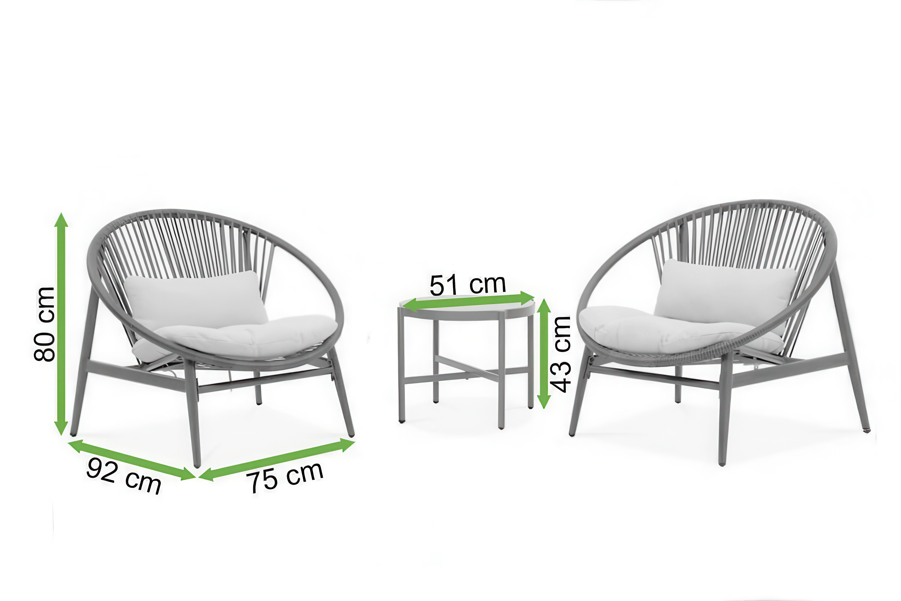 Set obsahuje dve kreslá a stolík, čím vytvára funkčné usporiadanie na relaxáciu. Môže byť používaný na balkóne, terase alebo v záhrade počas každodenného používania.