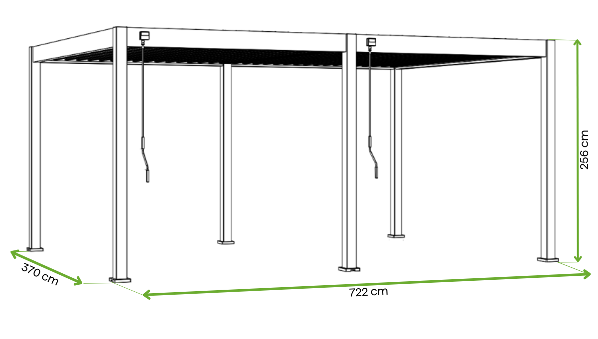 Rozmery pergoly: 370 × 722 × 256 cm