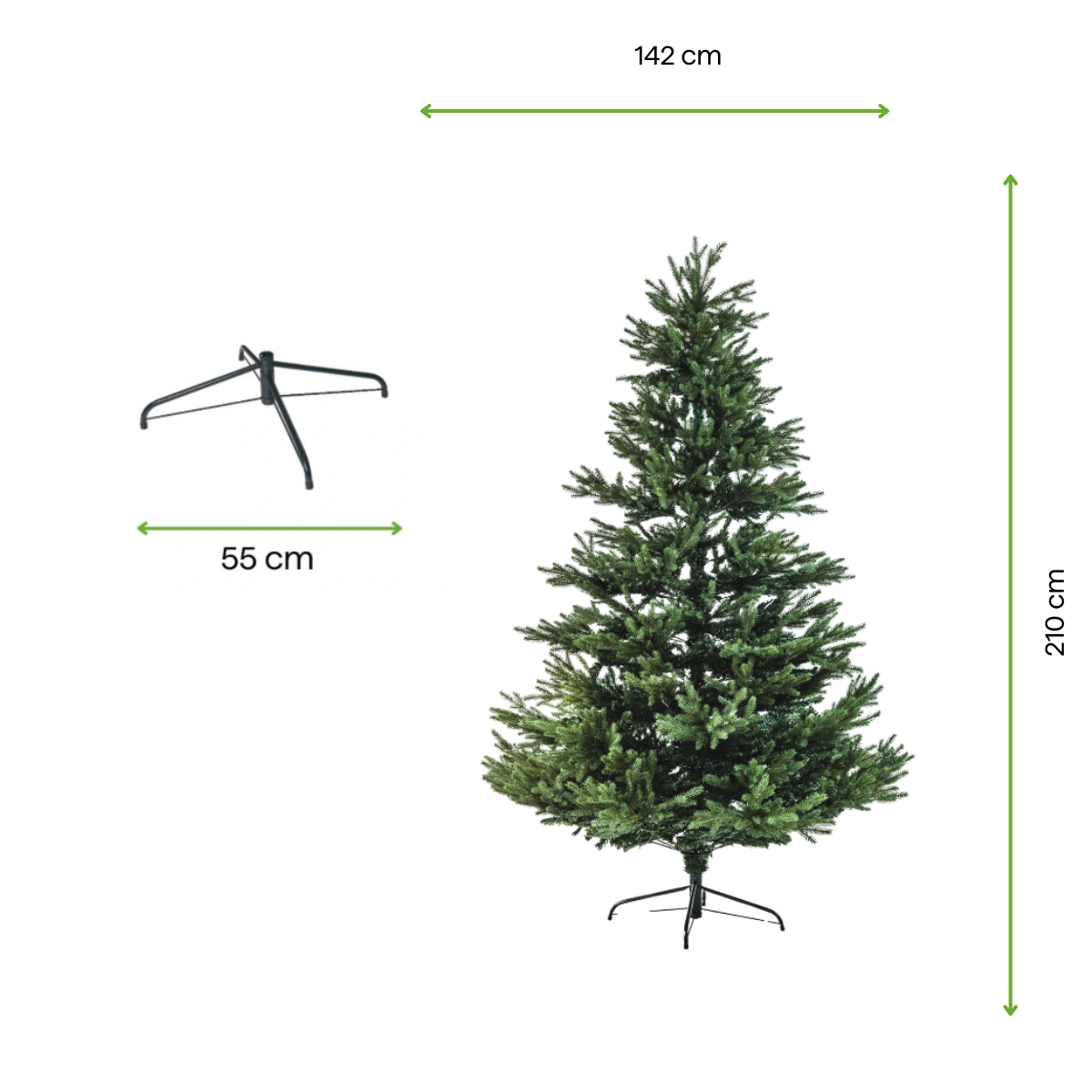 Objavte ideálny základ pre svoje vianočné dekorácie! Náš elegantný vianočný stromček má bujný a prirodzený vzhľad vďaka 3681 hustým vetvičkám. Vďaka ich realistickému prevedeniu je stromček pôsobivým pozadím pre svetlá, ozdoby a reťaze. Vyberte si odolnú prémiovú dekoráciu, ktorá si zachová svoj pôvab po mnoho rokov.