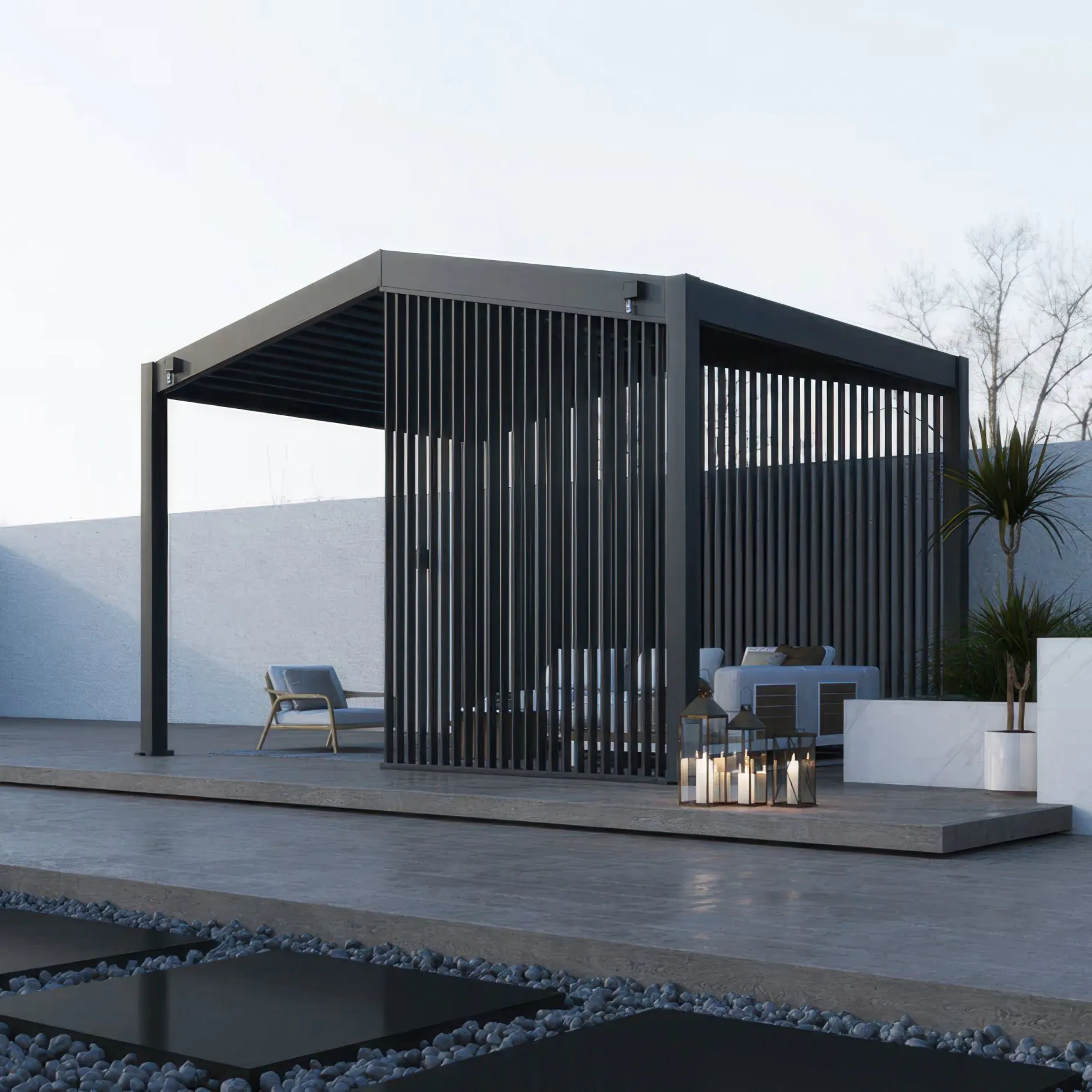 Vďaka premyslenej modulárnej konštrukcii získate neobmedzené možnosti usporiadania, ktoré vám umožnia presne prispôsobiť pergolu vášmu životnému štýlu. Môžete vytvoriť plný kryt pozdĺž celej strany, čím si vybudujete úplne súkromnú enklávu na relaxáciu, zvoliť rohový kryt, ktorý účinne chráni pred vetrom z dvoch strán, alebo použiť panely ako funkčné priečky na elegantné oddelenie zón na terase. Táto sloboda konfigurácie zaručuje, že váš priestor bude nielen estetický, ale predovšetkým dokonale funkčný a pohodlný každý deň.