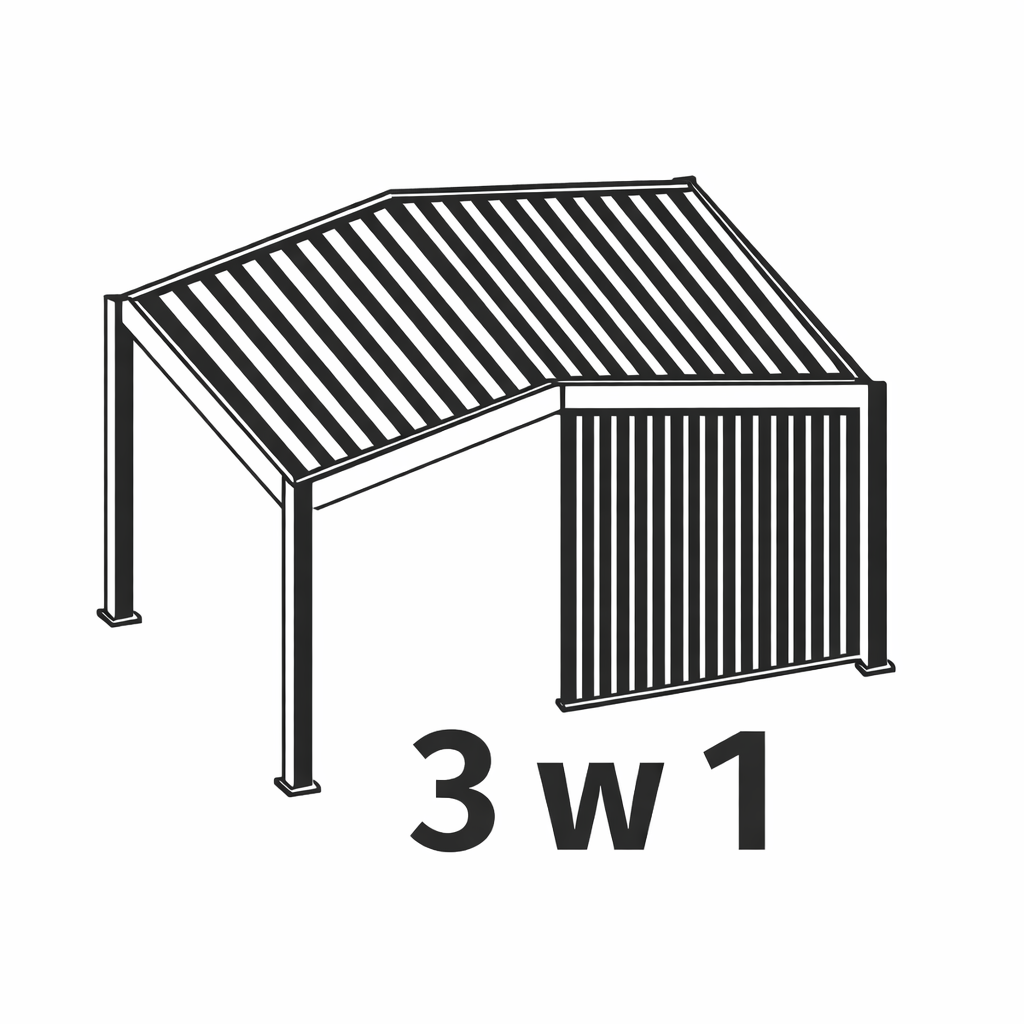 Zvýšte estetiku svojho okolia vďaka vertikálnemu vzoru, ktorý pergole dodáva moderný a luxusný charakter. Panel pokrývajúci polovicu 4-metrového boku vnáša do záhradnej architektúry požadovanú asymetriu a ľahkosť, čím sa vaša terasa stáva jedinečnou vizitkou domu, ktorá očarí každého návštevníka.