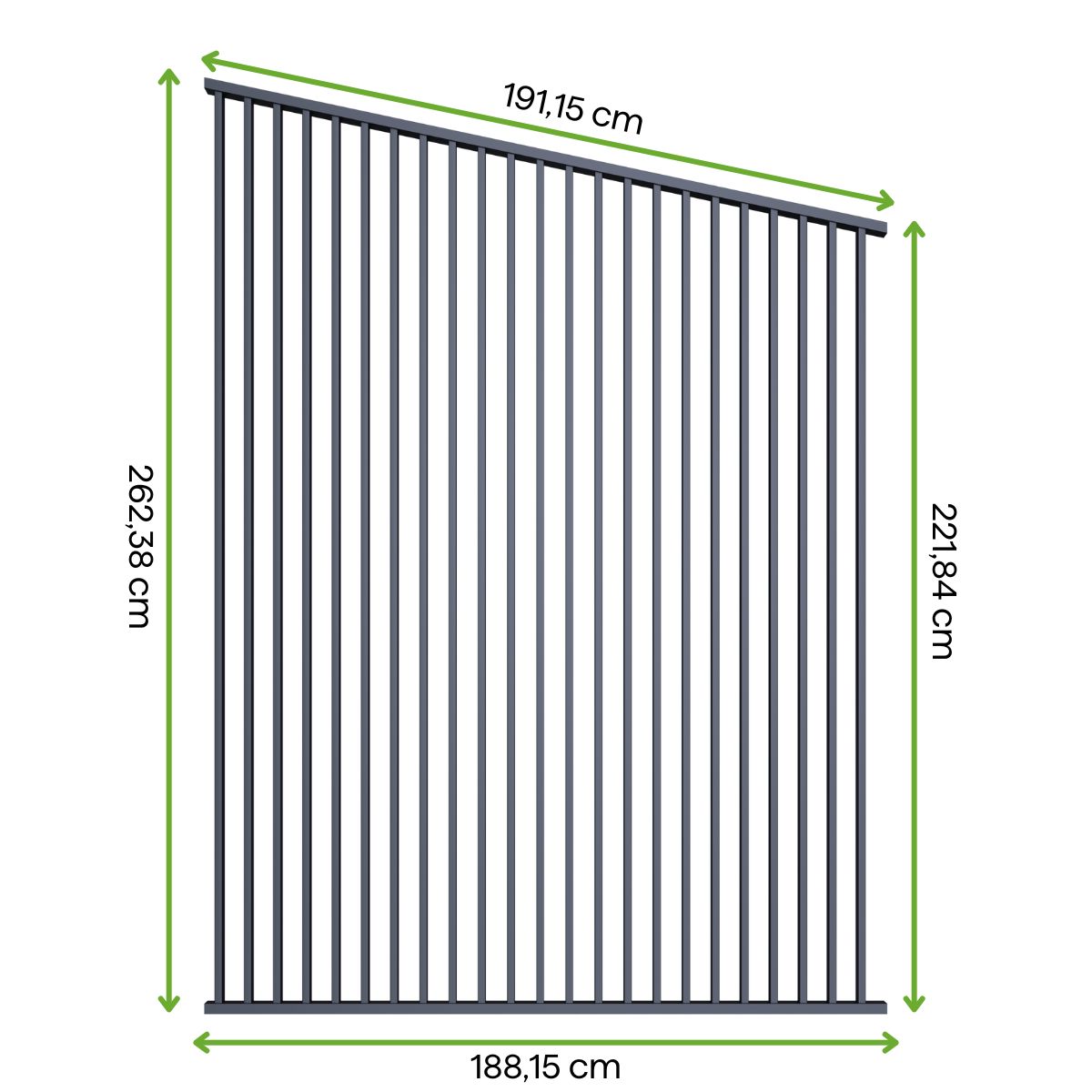 Moderný vertikálny žalúziový panel pre pergolu SUMMIT 1,88 m antracitovej farby od spoločnosti Gutroof účinne chráni pred slnkom a vetrom a dodáva vašej pergole jedinečný štýl. Je navrhnutý pre model Summit 4x3 a pokrýva polovicu strany s dĺžkou 4 m, čím vám poskytuje úplnú voľnosť pri usporiadaní. Robustná hliníková konštrukcia s práškovou povrchovou úpravou zaručuje odolnosť, zatiaľ čo vertikálny vzor lamiel poskytuje pohodlie a súkromie, ktoré na terase potrebujete.