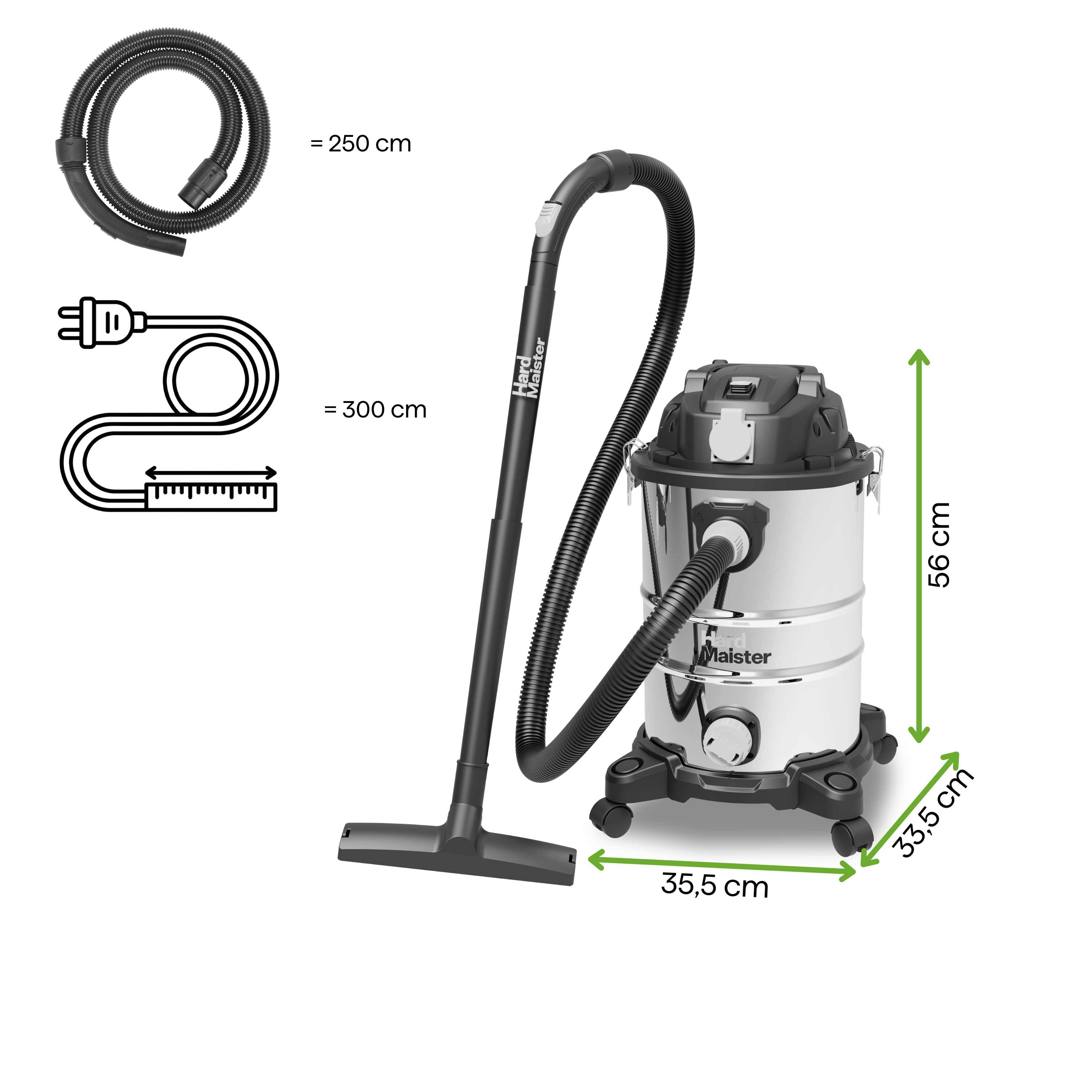 Výkonný dielenský vysávač na mokré a suché vysávanie HardMaister s príkonom 1300 W je profesionálne riešenie vytvorené na intenzívne upratovanie. Robustná 25 l nádrž z nehrdzavejúcej ocele zaručuje odolnosť voči náročným podmienkam na stavbe a v dielni. Čistiaci systém s HEPA filtrom a pôsobivý sací výkon 19 kPa umožňujú rýchlo odstrániť prach, nečistoty a rozliate kvapaliny. Funkcia vyfukovania a mobilná konštrukcia na štyroch kolieskach robia upratovanie garáže alebo pivnice mimoriadne efektívnym.