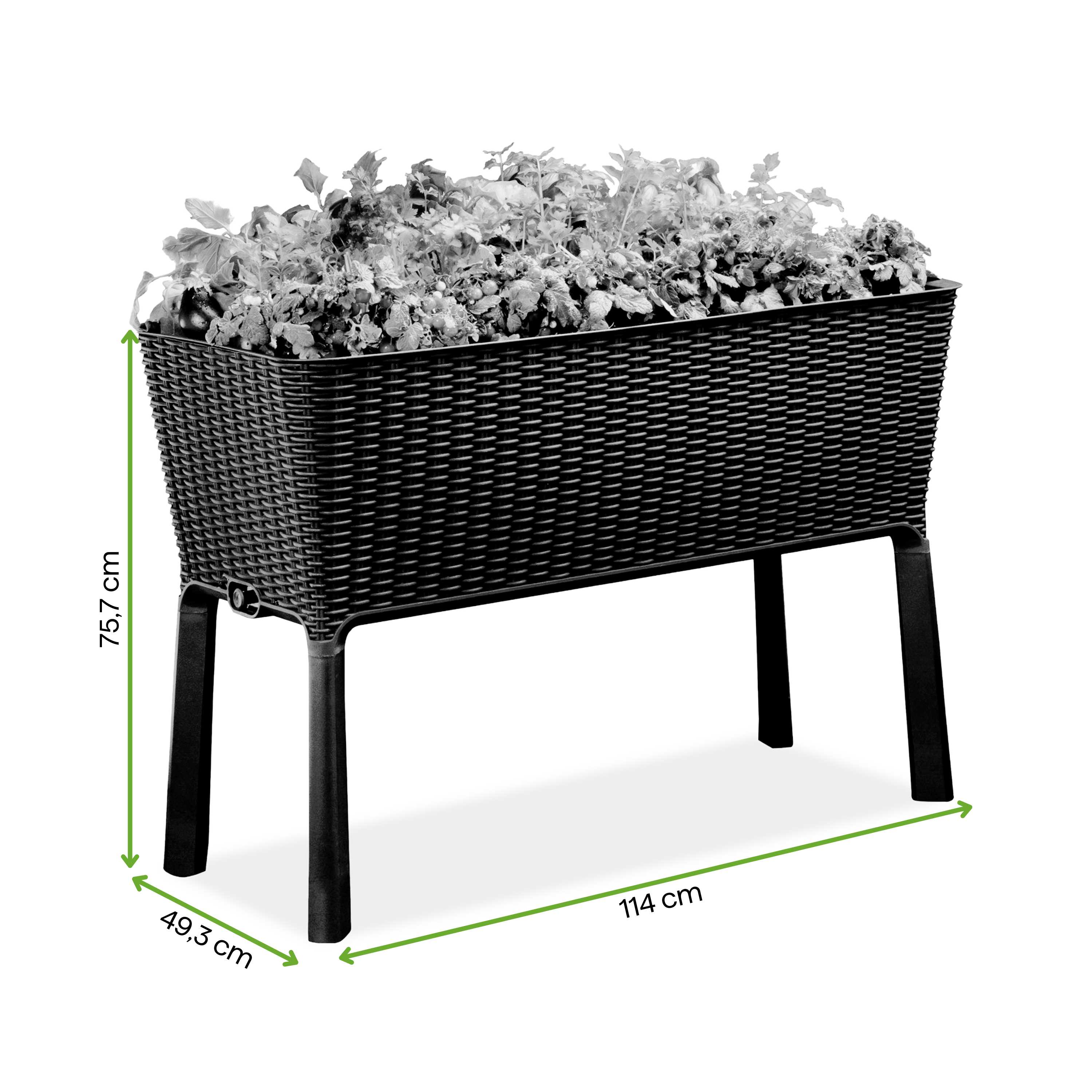 Pôsobivý objem 120 l: Veľký priestor vám umožní ľahko a efektívne pestovať bohaté kvetinové aranžmány, čerstvé bylinky alebo vlastnú zeleninu na jednom mieste.