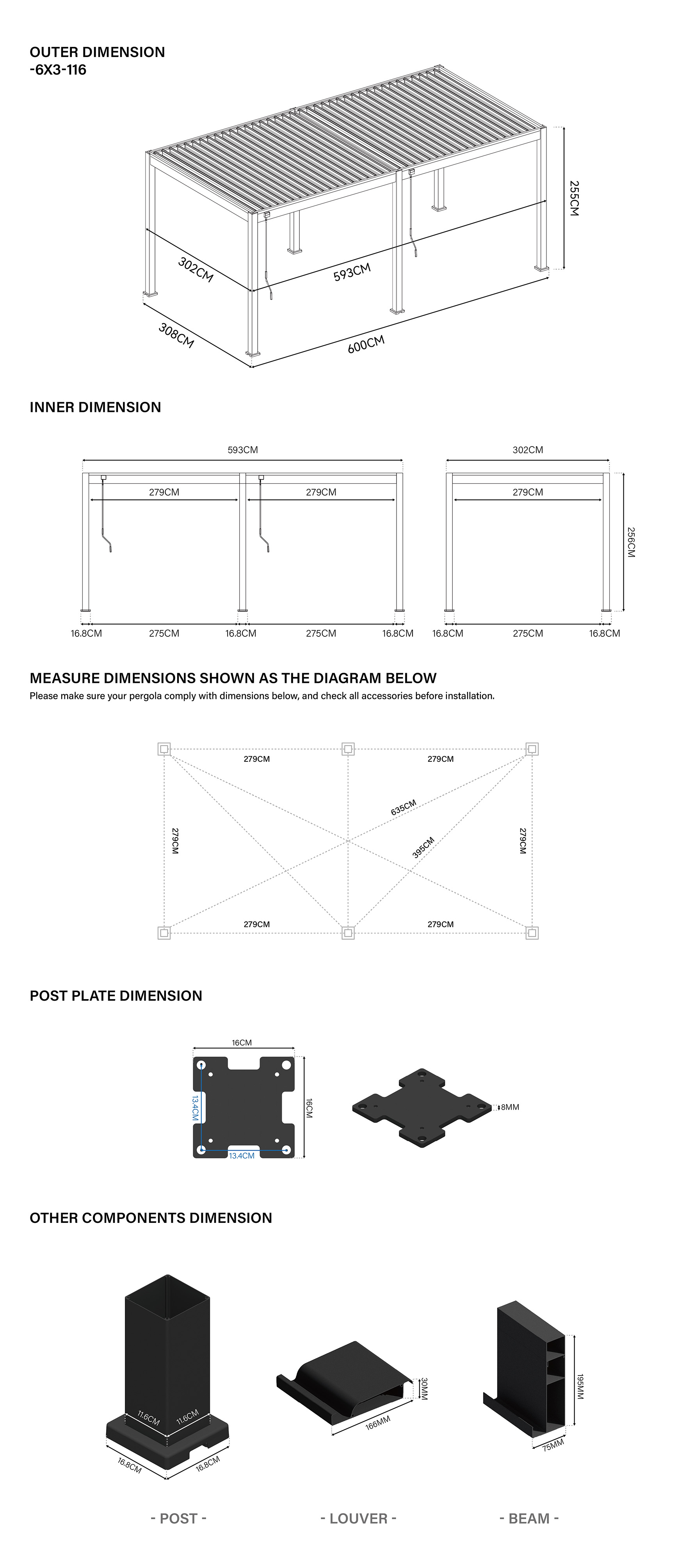 Pergola:- hĺbka: 309 cm