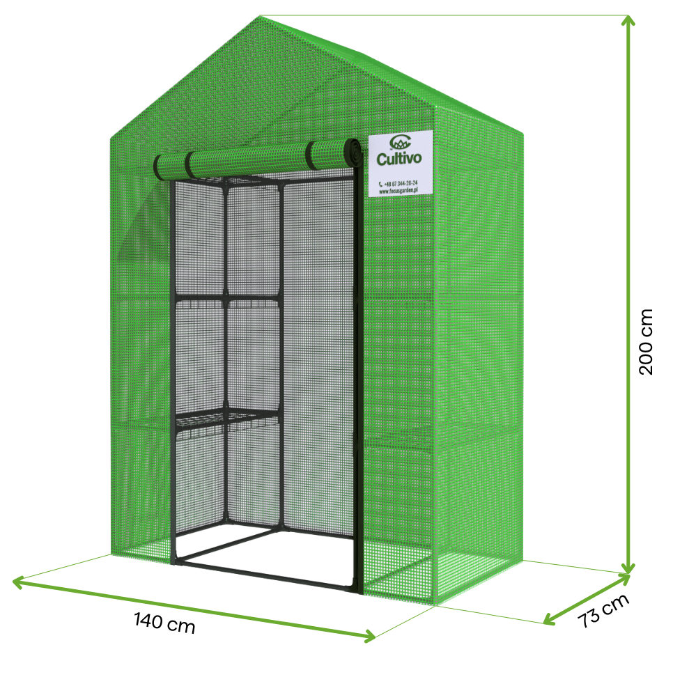 Skleník záhradný s policami je ideálnym riešením pre záhradkárov, ktorí chcú vytvoriť optimálne podmienky pre rast rastlín bez nutnosti budovania nákladnej stavby. Ľahký, ale stabilný rám z ocele a kryt z odolnej PE fólie s plošnou hmotnosťou 140 g/m² so vstrekovanou zelenou PP sieťovinou zaručujú odolnosť a účinnú ochranu pred poveternostnými vplyvmi. Vďaka svojim kompaktným rozmerom je vhodný do záhrad, na pozemky a dokonca aj na balkóny a terasy.