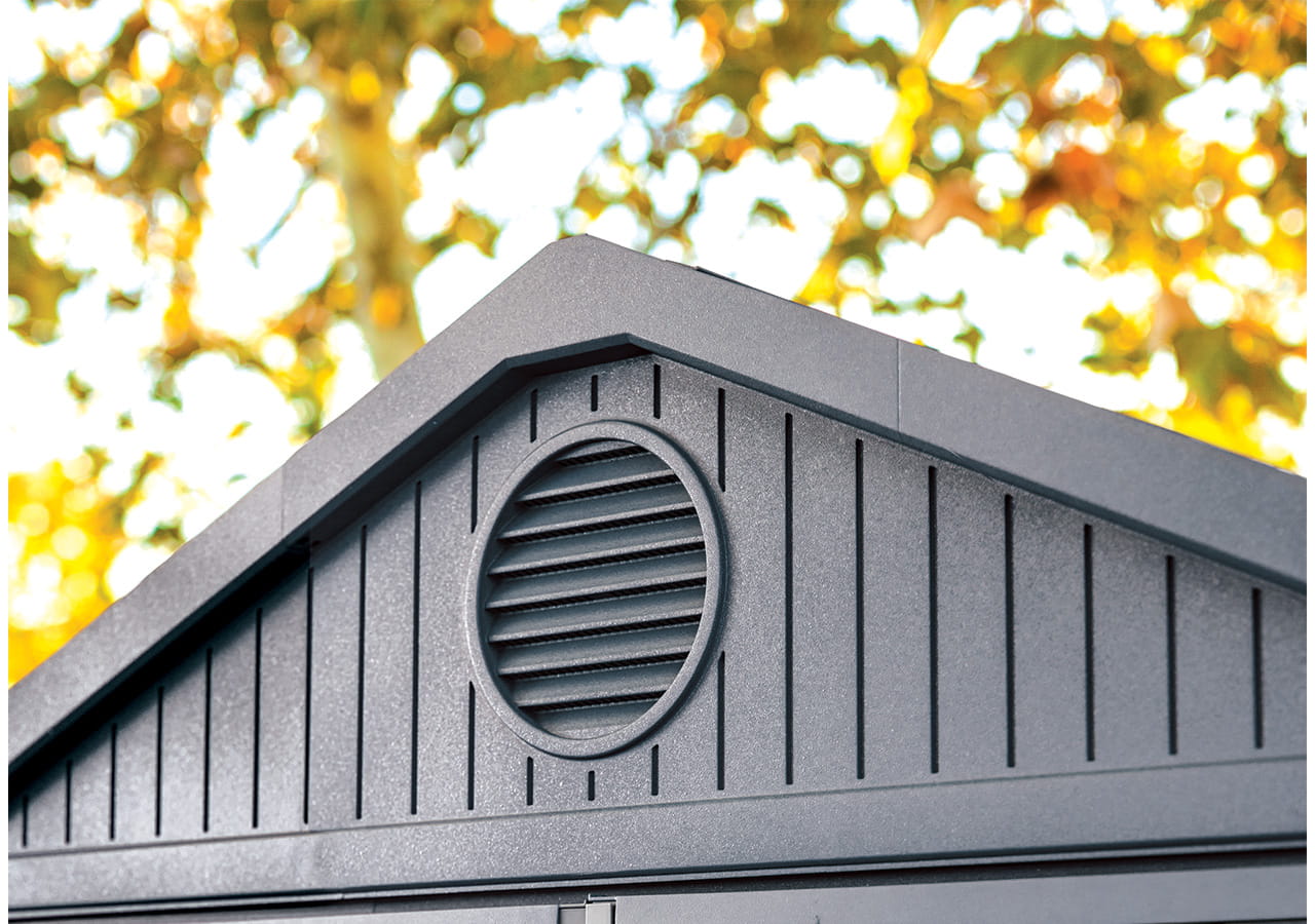 Záhradný domček Darwin 4x6 od spoločnosti Keter je robustná a estetická konštrukcia vyrobená z kompozitných panelov Evotech+, ktoré verne napodobňujú drevo a nevyžadujú žiadnu údržbu. Vďaka systému spojenia pero-drážka je montáž rýchla a jednoduchá, bez potreby špeciálneho náradia. Integrovaný ventilačný panel zabezpečuje neustály prúd vzduchu, ktorý účinne chráni vnútro pred vlhkosťou. Strecha je zosilnená kovovými prvkami a dvere možno dodatočne zabezpečiť visiacim zámkom. Konštrukcia umožňuje trvalé uchytenie do podlahy, čo zvyšuje stabilitu domčeka. Na celok sa vzťahuje 10-ročná záruka výrobcu – záruka kvality a spoľahlivosti na dlhé roky.
