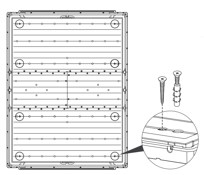 Upevnenie Domček musí byť pevne pripevnený k podkladu v určených montážnych bodoch. Upevňovacie skrutky nie sú súčasťou balenia.