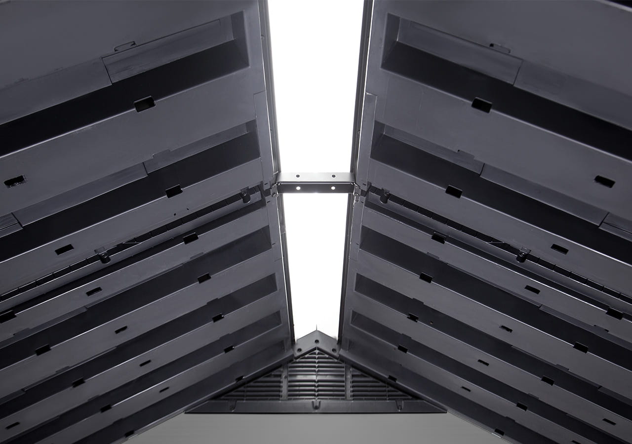 Integrované ventilačné panely zabezpečujú konštantné prúdenie vzduchu, udržiavajúce interiér suchý a vzdušný. To účinne chráni uložené predmety pred vlhkosťou.